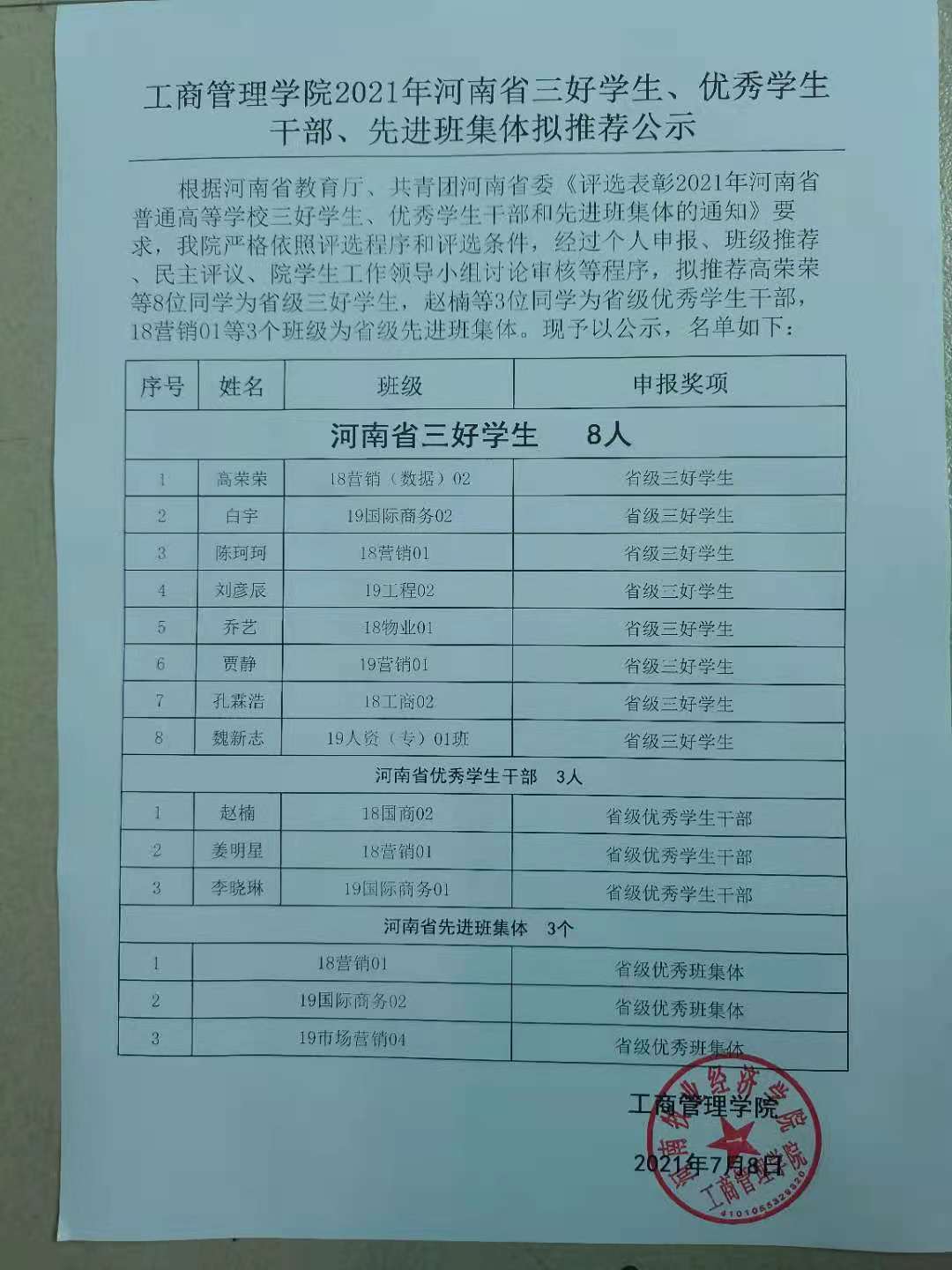 现对以上拟推荐的个人和集体进行公示,公示期为三天,公示期为7月8日-7月10日,公示期内如对推荐的个人或集体有问题反映,请及时向ok138cn太阳集团古天乐学生工作领导小组反映。