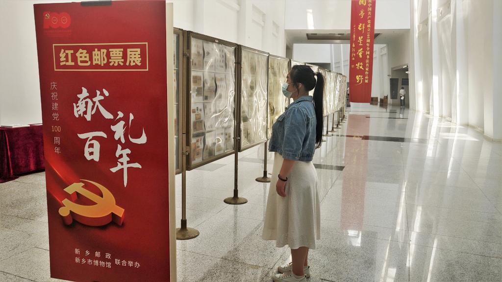 为庆祝中国共产党建党100周年,平原博物馆正厅开展了“峥嵘百年·与党同行”--献礼建党100周年党史展,讲述党的理论成就,以及重大会议:瓦窑堡会议,八七会议,遵义会议等;重大战役,五四运动,新文化运动,百团大战,上海工人三次武装起义,南昌起义,抗美援朝的胜利,以及国共两次合作等一系列事迹。向东走去,墙上展出的是全国道德模范及事迹,首届、第四、五届全国诚实守信道德模范获得者,王一硕、范海涛、李江福,第二、三届全国助人为乐道德模范获得者,裴春亮、买世蕊。再深入走去,走廊里是为庆祝建党100周年特意展出的“献礼百年”-红色邮票展。小邮票承载着大历史,建党初期”“抗日战争”“解放战争”“改革开放”等各时期党和国家重大历史节点事件呈现在面前,再现党的百年奋斗历程。一枚枚历久弥新的邮票,一段段难以忘怀的故事,无一不在诉说着久经磨难的中华民族从站起来、富起来到强起来的百年光辉历程。透过这些邮票,更直观地了解了党和祖国的发展历程,在这方寸之间,细数着每一段峥嵘岁月。“历史是最好的教科书,也是最好的清醒剂。”举办此次党史展和邮票展,通过鲜活的故事、生动的图片,栩栩如生地讲述中国共产党百年辉煌历程,让我们了解党史、铭记历史。