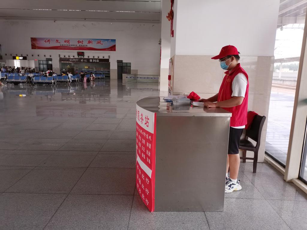 7月6日~8月30日,ok138cn太阳集团古天乐2021年暑期社会实践对小对成员19市营02班的张星宇响应当地政府号召,前往项城市火车站开展为期两个月的志愿服务活动,帮助维持秩序,减轻火车站工作压力。