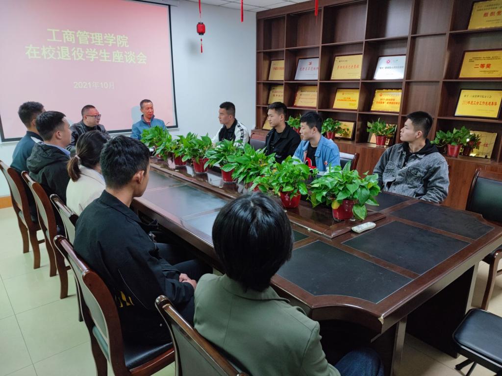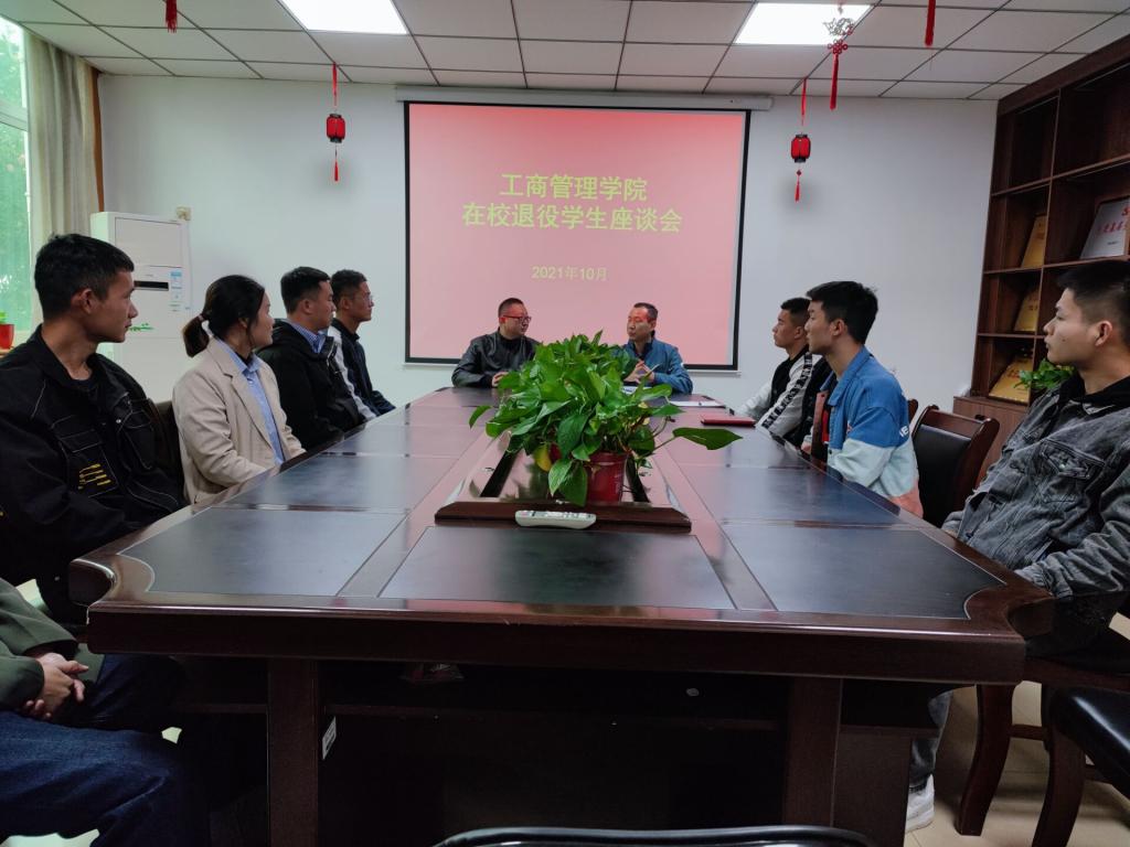 为了解我院退伍复学学生学习、生活和思想状况,帮助解决退伍复学学生学习、生活中的实际困难,进一步推动我校国防教育工作的顺利开展,10月19日中午12:30,我院在413会议室召开了2021年在校退伍学生座谈会。院学生工作办公室主任詹珅老师,武装专员李志刚老师和10名退役学生进行了沟通座谈。