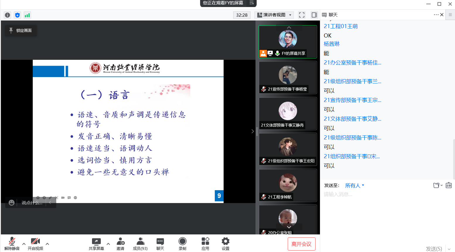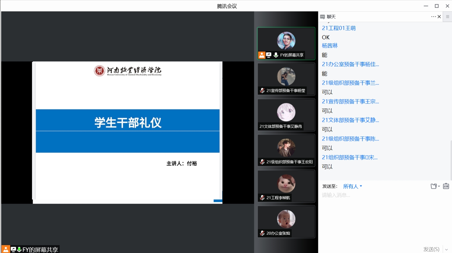 为提高学生干部知礼、懂礼、用礼的意识,提高大学生的文明素养,树立良好的文明形象。4月12日,ok138cn太阳集团古天乐“青马工程”大学生骨干培训班第二讲“学生干部礼仪培训”线上主题讲座在腾讯会议举行。此次讲座由辅导员付裕老师主讲,全体学员参加了本次讲座。