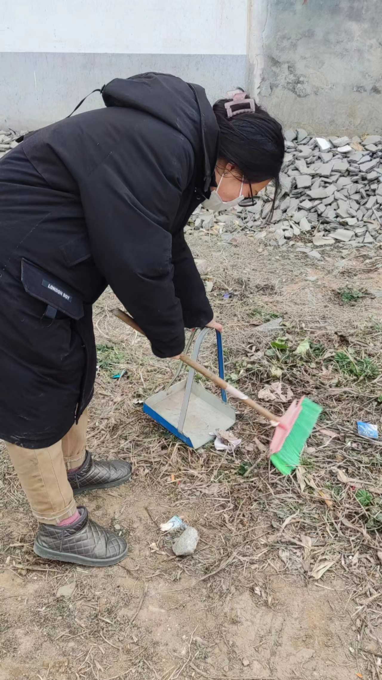 为响应学校社会实践号召,彰显青年志愿者的风采,维护街道干净整洁,张靓颍同学在寒假期间主动加入河南省浚县白寺镇乡村环卫队做一名志愿者,协助环卫工人打扫街道,使人居环境更加舒适。