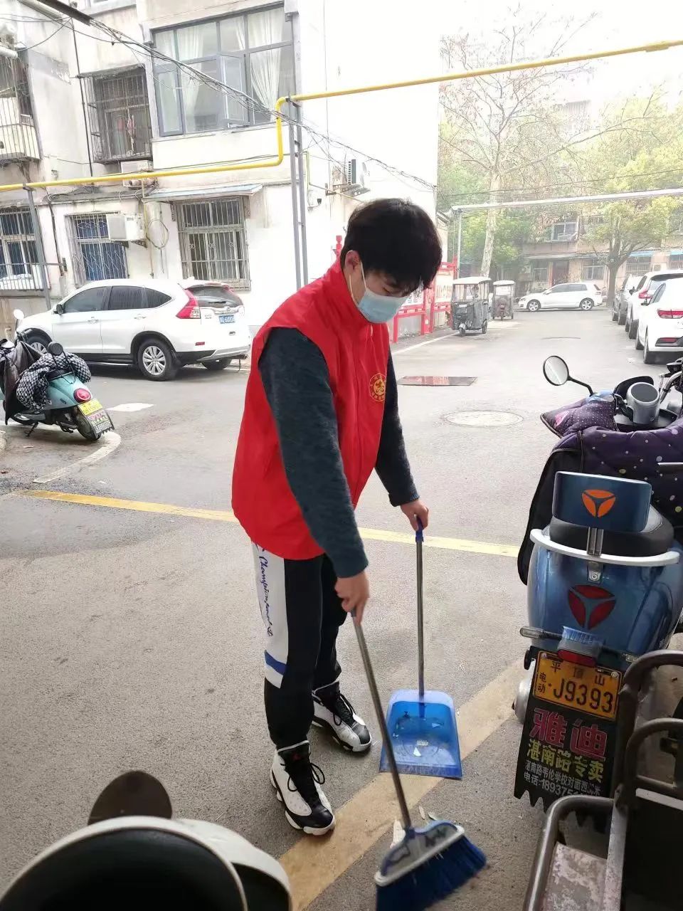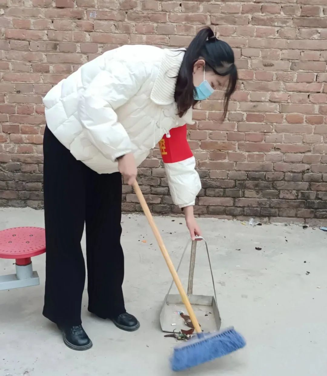 为了营造良好的乡镇环境,共同打造整洁、有序的社区环境,积极响应国家绿色生态环境建设的号召,发挥自我价值,刘瑜琦同学积极申请在安阳市滑县八里营镇当一名志愿者,协助清洁人员共同完成环境打扫工作。