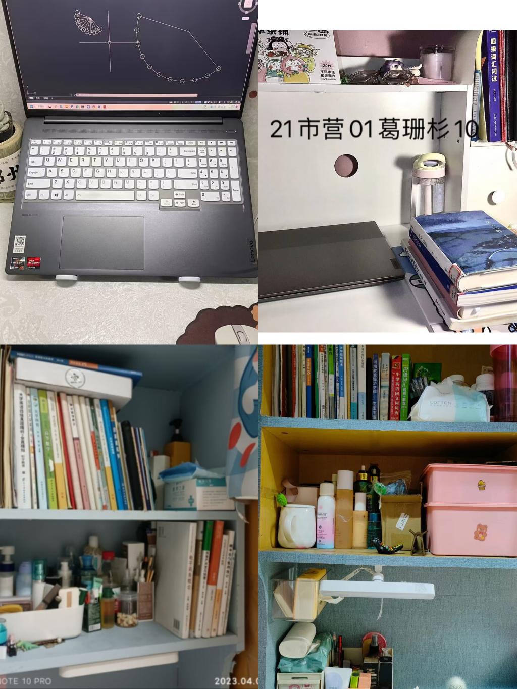 22工商01班的林文静同学的书桌,有充满温馨的元素、有整齐摆放的书籍,来到这样的书桌前感受到的是暖暖的温馨,在忙碌的学习生活中治愈自己。22工商02班张评兰同学的书桌,摆放偶像的照片、杂志,并在便签上写上励志的话语,激励自己不轻言放弃、勇往直前。