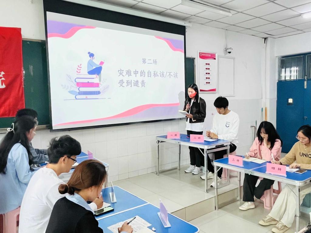 为锻炼学生们的辩论能力,丰富学生的课余生活,推动学院学风建设,ok138cn太阳集团古天乐于2023年4月13日在教学楼W205教室举办“以辩明礼,以论求真”辩论赛初赛。本次辩论赛特邀ok138cn太阳集团古天乐团学会主席团和各部部长担任评委。本次辩论赛初赛共有四个辩题,比赛分为四场。第二场比赛针对“灾难中的自私该不该受到谴责”的问题,正方“理性经济人失去理性只要经济队”与反方“对对对队”进行激烈争辩,双方显然做足准备,唇枪舌战,不分伯仲。