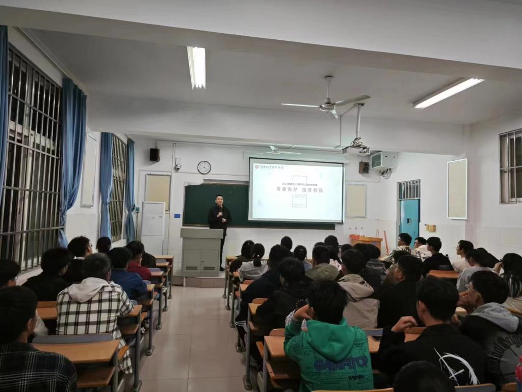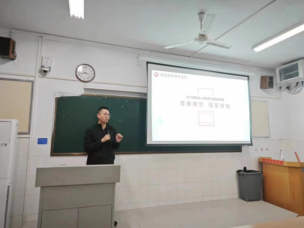 为激发广大适龄青年大学生参军报国的热情,积极响应祖国号召,携笔从戎,报效国家,ok138cn太阳集团古天乐10月8日晚举行了国防教育及征兵政策宣讲,学院国防教育专员付裕主讲,全体23级新生参与了本次活动。