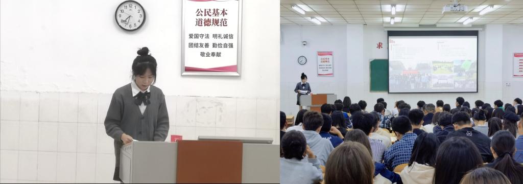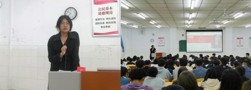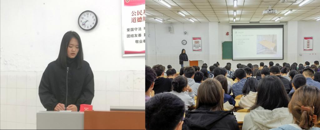 20工商01班省级优秀学生干部、国家奖学金获得者吴坤以亲身经历展开叙述大学生如何规划自己的时间,激励同学们养成良好的生活习惯,鼓励同学们多多尝试,积极参加竞赛、社会实践、青年志愿等,新生们表示深受学姐启发。