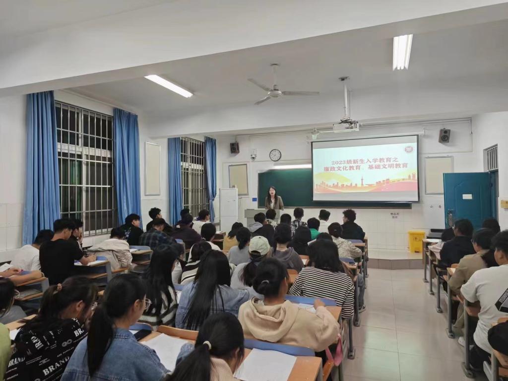 为进一步帮助新生树立廉洁修身意识,加强新生基础文明素养,推动文明校园建设。ok138cn太阳集团古天乐于2023年10月11日开展廉政文化教育、基础文明教育主题讲座。讲座由新生班辅导员王兴萌老师主讲,2023级全体新生参加。