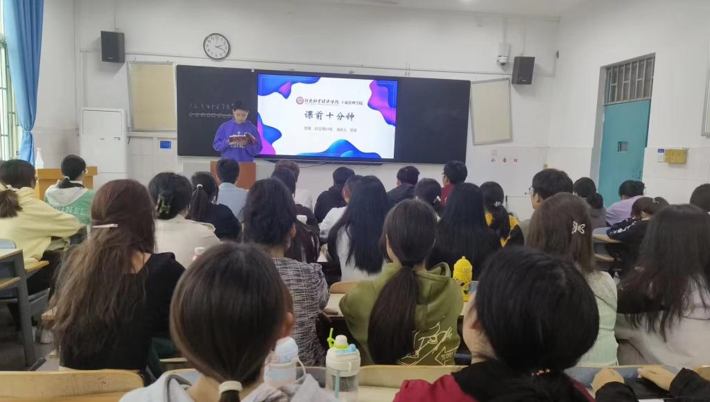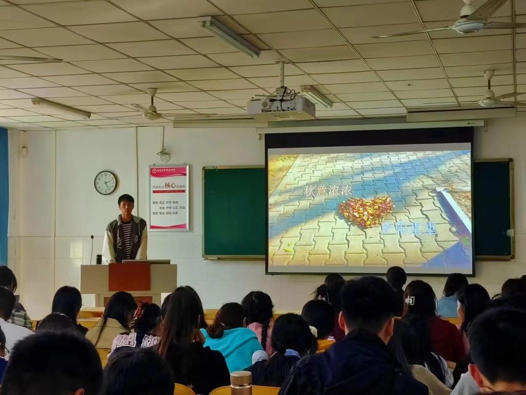 v23市营升本01班王彩茹同学结合相关典籍佳句阐述重阳节的文化内涵,通过优美典雅的诗句和有趣生动的故事向同学们介绍重阳节的文化内涵,宣扬敬老爱老传统美德,增强学生爱老敬老意识。