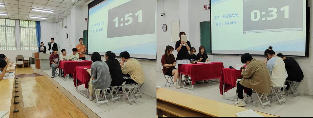 本次辩论赛采取积分制规则,需要选手们在有限的时间内进行深入的剖析和论述,得分高的两个队伍进入决赛。比赛现场,由主持人介绍了本次辩论赛的比赛流程和目的,紧接着,四队选手围绕着“温饱是不是谈道德的必要条件”“保护弱者是不是社会的倒退”等辩题展开辩论,他们紧扣辩题,逻辑清晰,观点鲜明。比赛过程中,23工程01班的对对对队和23工商01班尽力队的精彩较量引起观众们的鼓掌喝彩,23国商01班的我说的都队和23市营01班的爱对不队唇枪舌战、智慧博弈,将现场气氛推向高潮,让人仿佛置身于一场思想的盛宴。经过激烈的角逐,最终23市营01班的代表队脱颖而出,荣获了本次辩论赛的冠军。她们在比赛中展现出了卓越的团队合作精神和出色的辩论技巧,赢得了评委和观众的一致好评。