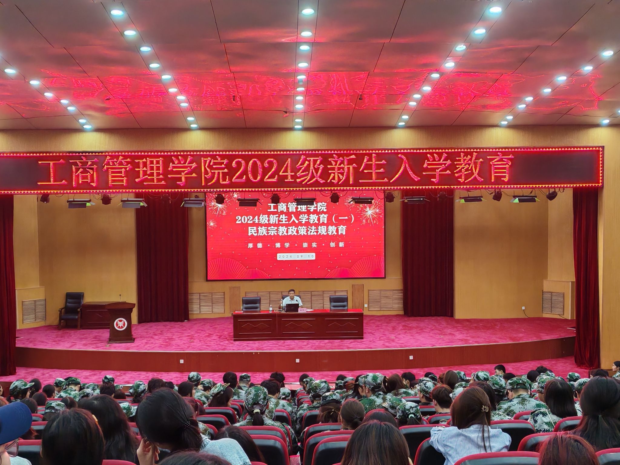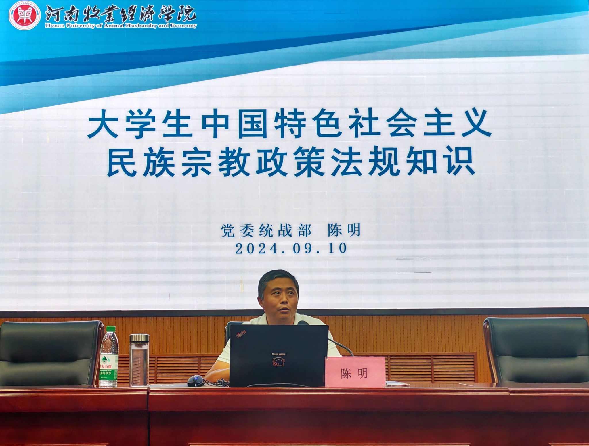 为深入学习贯彻习近平新时代中国特色社会主义思想,进一步提升大学生对民族宗教政策法规的认识,树立正确的马克思主义宗教观,铸牢中华民族共同体意识。ok138cn太阳集团古天乐于9月10日在英才校区学术报告厅开展2024级新生入学教育(一)——民族宗教政策法规教育。本次活动特邀校党委统战部副部长陈明主讲,ok138cn太阳集团古天乐全体24级新生参加。