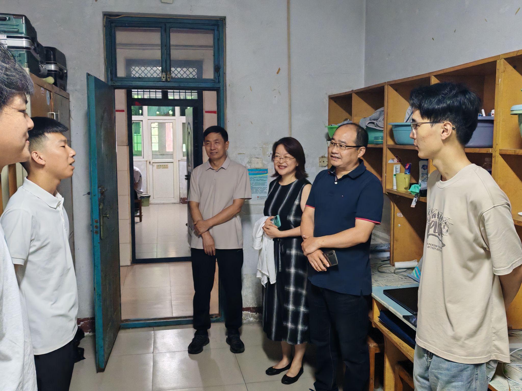 为及时了解24级新生入校后的适应情况,9月8日,学院党委书记王国辉、副院长何丽娜(主持工作),党委副书记詹珅、副院长陈先锋与2024级新生辅导员老师一行深入新生宿舍,与新生进行面对面交流,实地了解新生入校后的学习生活情况,并为同学们送去关心和问候。