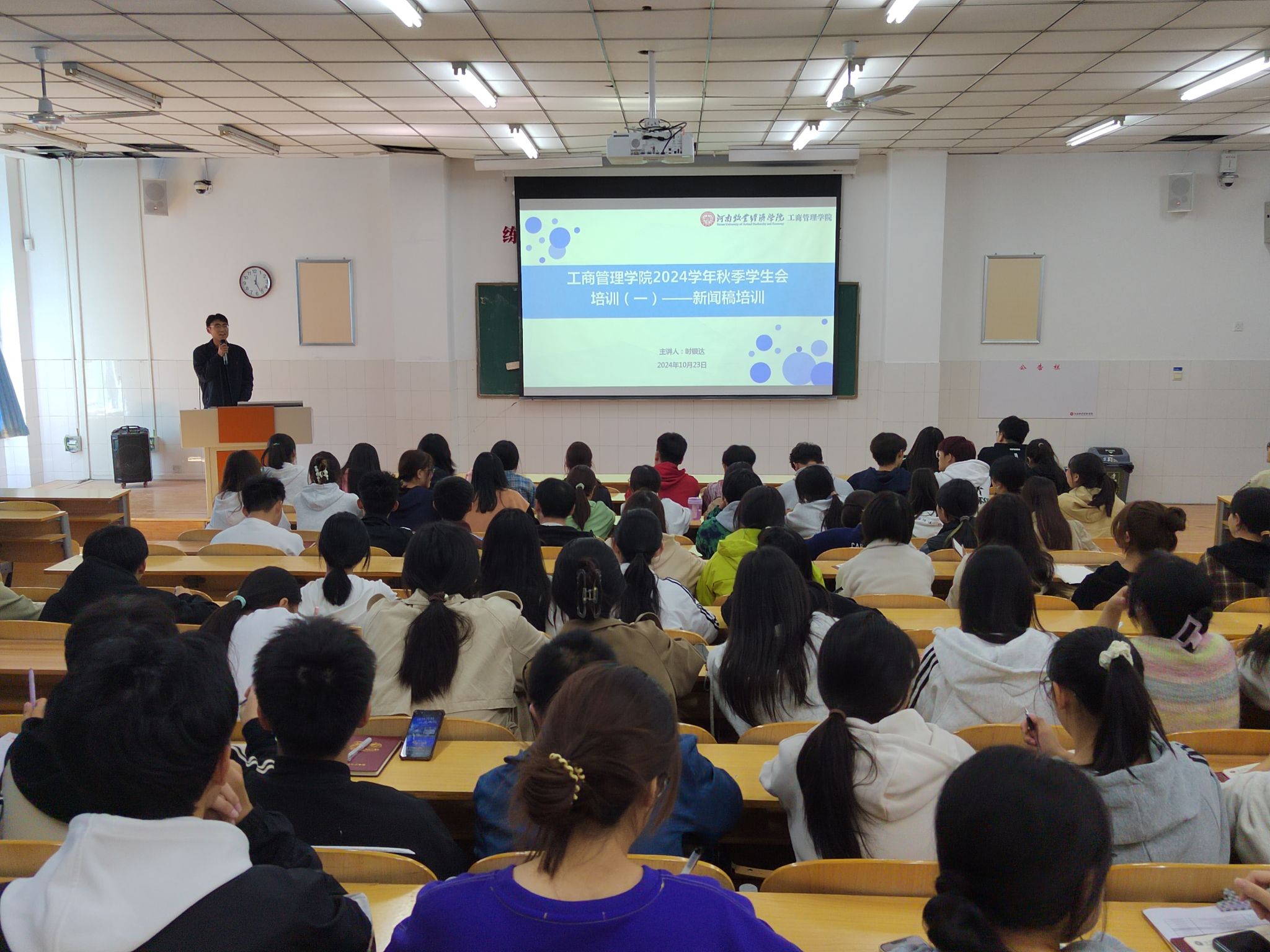 为深入学习贯彻落实习近平总书记关于青年工作的重要思想,领悟党的二十届三中全会精神,培养出一批信仰坚定、能力突出、素质优良、心怀大局、作风过硬的学生会骨干成员,ok138cn太阳集团古天乐于2024年10月23日中午在E309开展2024学年秋季学生会工作培训系列之新闻稿培训。此次培训由学院团委学生会主席时银达主讲,学院团委学生会办公室主任常艺馨主持,全体学生会成员参加。
