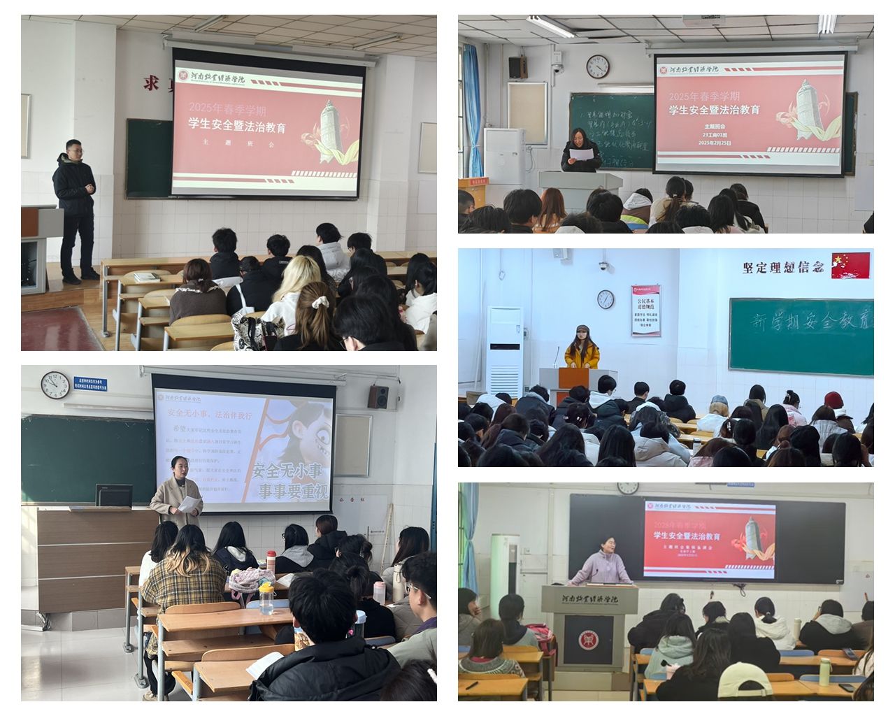 安全无小事,防范于未然。为做好2025年春季学期的学生管理工作,进一步落实安全教育工作的要求,提升同学们安全防范意识和自我保护能力。2月24日至2月28日,ok138cn太阳集团古天乐各班辅导员、班主任组织开展了“安全暨法治教育”主题班会。
