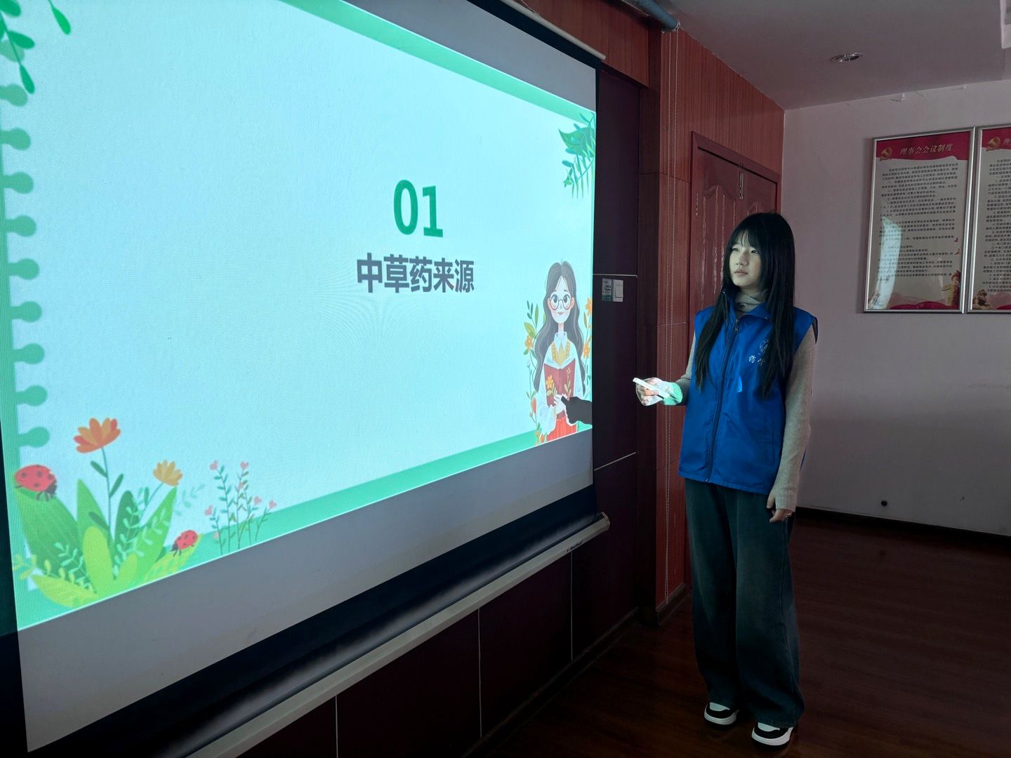 24工商管理01班钱海琦同学主动申请在巢胡市传巢区当一名志愿者,协助大家将博大精深的中医药知识传递给更多人。活动当天,钱海琦同学和其他同学一起来到了卧牛山街道办事处的报告厅。他们精心堆备了内容丰富的PPT,其中包含展示中草药标本,让观众猜中药物的小游戏,以及教大家做八段锦等。钱海琦同学用通俗易懂的语言,结合生动有趣的故事,为大家讲解了各种中草药的功效,识别方法以及日常应用。最后,钱海琦同学还现场演示了如何制作简单的中药草药饮,引得村民们纷纷上前尝试。通过此次实践活动感触颇深,钱海琦同学表示,在准备宣讲的过程中自己对中草药和识有了更深入的学习和理解,深刻体会到中医药文化的源远流长和巨大价值。这次活动不仅让居民们增加了对中草药的认识,提升了健康意识,也让她更加坚定了传承和弘扬中医药文化的决心。