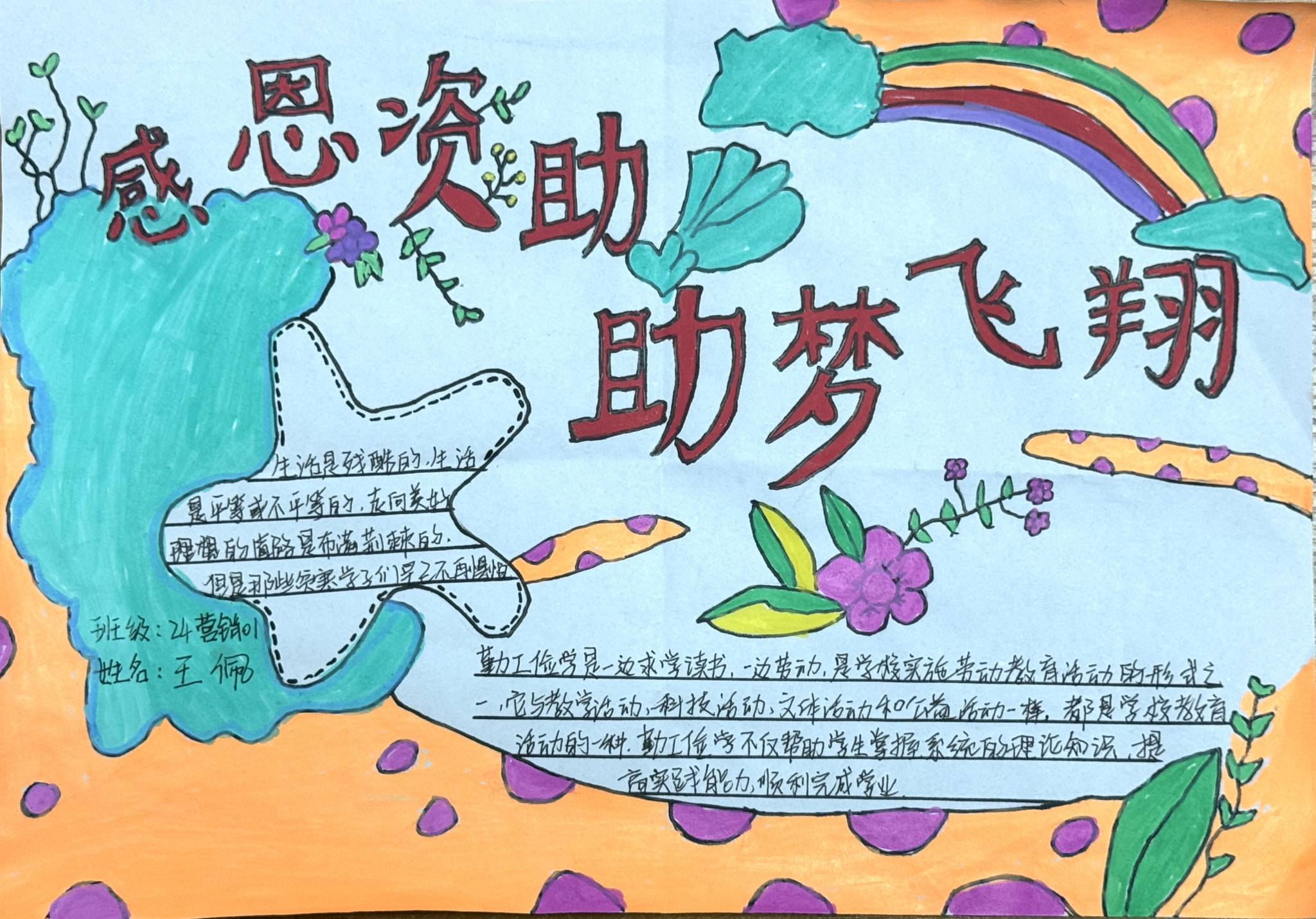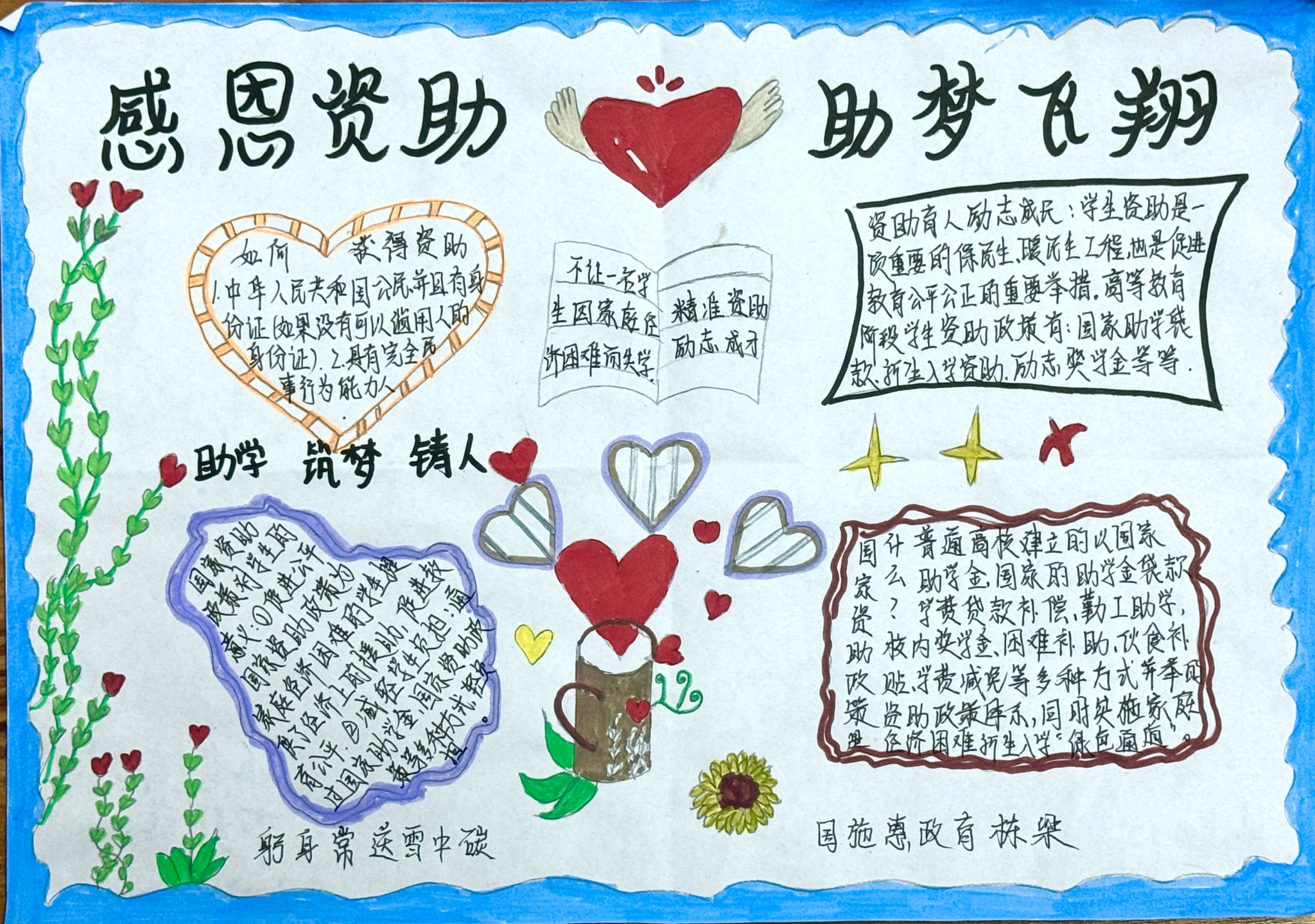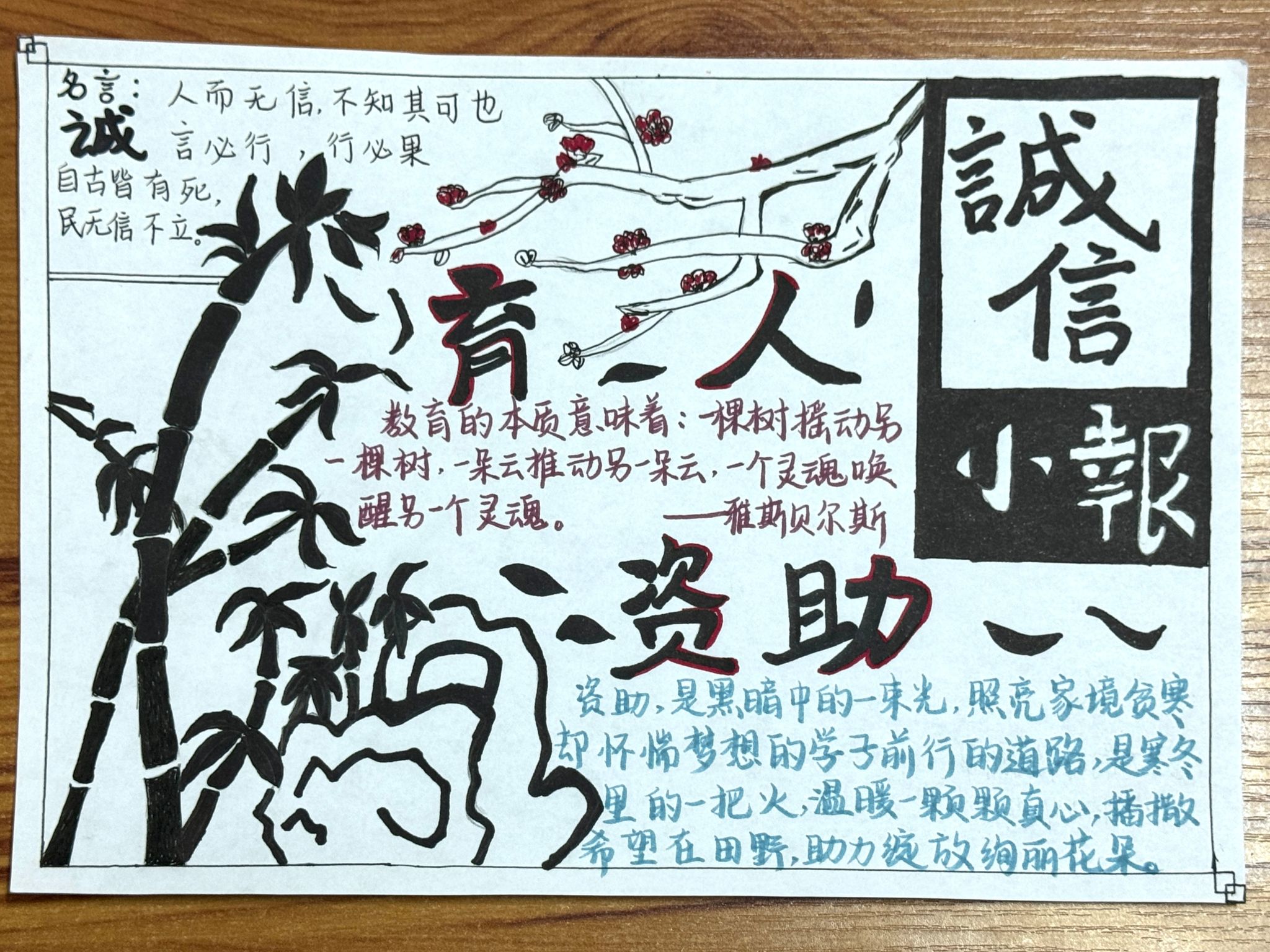 同学们热情高涨,积极参与活动,通过自主查阅资料的方式,深入了解资助政策的内容、资助体系的构成以及其背后所蕴含的育人价值。他们利用课余时间,精心构思创作内容。有的通过形象的插画和简洁有力的文字,直观地展现资助对于学生成长的重要助力以及诚信受助的关键意义;有的将资助政策的要点、诚信故事、感恩之情等元素巧妙融合,排版精美,富有创意。在创作过程中,学生们相互交流探讨,分享灵感与思路,充分发挥想象力与创造力,彰显出当代学生积极向上、诚信感恩的精神风貌,为校园文化建设增添了一抹亮色。