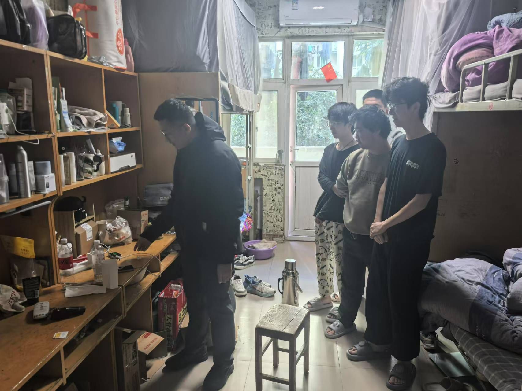 此次检查分为两组,一是检查宿舍用电安全:检查宿舍有无大功率电器、乱拉插排等情况;二是检查宿舍供暖情况;三是检查宿舍管制刀具情况;四是检查宿舍卫生情况,做好冬季传染病的预防工作。大家深入宿舍分别对学生宿舍的用电安全、内务卫生、防火防盗等方面隐患进行了排查,提醒同学们务必注意宿舍安全问题、提高安全意识,禁止使用违规电器,不私拉乱扯电线,不存放易燃、易爆物品等,对宿舍存在的安全卫生问题现场进行了整改。检查中,辅导员老师们与同学们亲切交谈,细致地讲解消防安全知识,详细询问了解他们目前的学习和生活情况,听取他们对于学生宿舍管理工作的意见和建议。