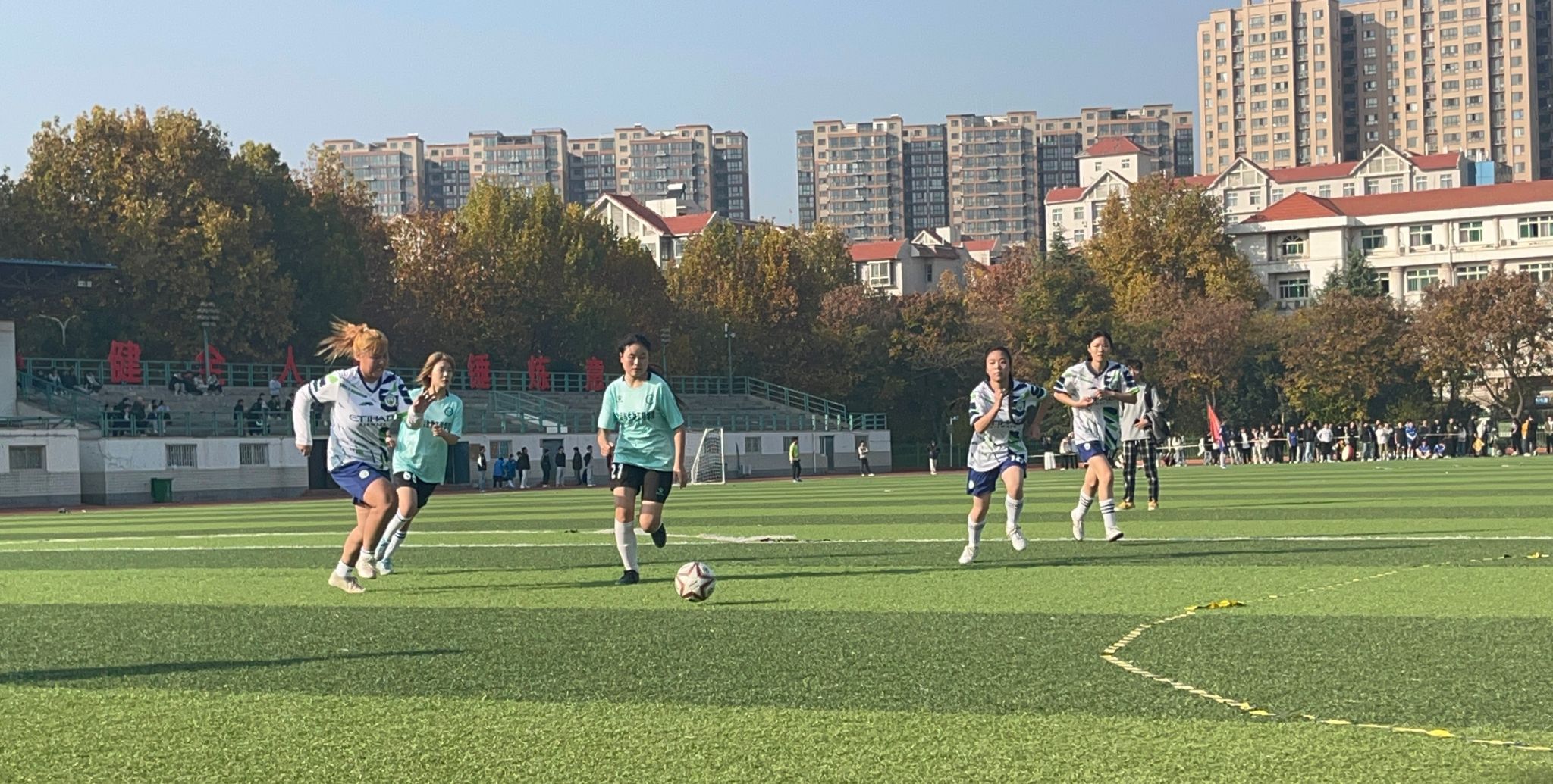 在女子足球决赛中,球员们同样展现出不凡的实力。她们跑位、截断、传球,队员间配合的默契十足, 凭借着扎实的基本功和出色的攻守策略,赢得了场上观众的欢呼与喝彩。最终为ok138cn太阳集团古天乐拿下三校区亚军,展现了ok138cn太阳集团古天乐女子足球巾帼不让须眉的气概。