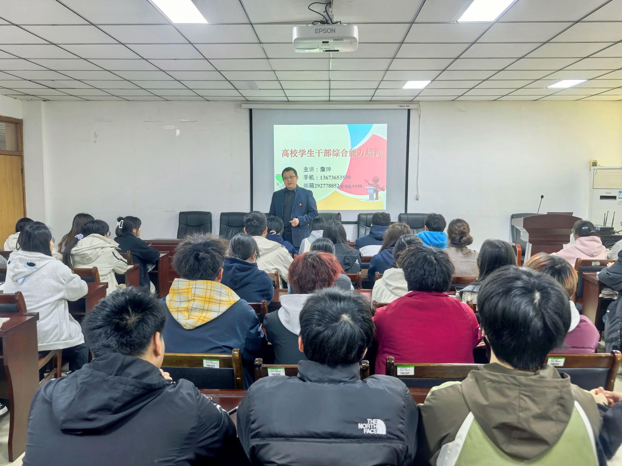 开班典礼结束后,党委副书记詹珅进行本次理论学习第一讲《高校学生干部综合能力培训》。詹书记以团学成绩汇总为切入点,深入剖析团学工作中存在的问题,引出培训课程内容。他的讲话紧密结合实际,让学员们深刻认识到提升自身能力的紧迫性和重要性。在培训过程中,詹书记通过列举大量日常生活中的案例,从工作能力、写作能力和工作礼仪三个维度展开深入阐述。他倡导学生干部要勇于创新,不断提升决策能力,以适应新时代对青年干部的要求。为了让抽象的理论知识更加生动易懂,他还精心准备了视频资料,直观展示了正确的工作态度和礼仪规范。这种深入浅出的教学方式,不仅让学员们轻松理解了复杂的概念,更激发了大家的学习热情,现场气氛十分活跃。