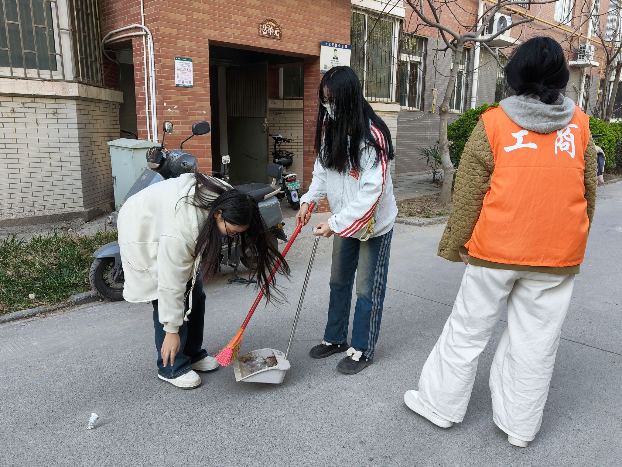 活动中,同学们积极响应学院号召,自备扫帚、簸箕等卫生工具,早早来到家属院准备。在负责人的带领下,大家分为十九个组,对小区内的道路、绿化带、卫生死角等进行清洁。同学们干劲十足,不怕脏、不怕累,认真清理着每一个角落,就连平时容易被忽视的烟头、纸屑也不放过。有的同学用手拾捡垃圾,将白色垃圾扔入垃圾桶;有的同学挥动着扫把,将落叶、烟头、纸屑统统扫进簸箕。他们认真清理每一个角落,不放过任何一处污渍。经过大家的共同努力,家属院焕然一新,路面干净整洁,花坛绿意盎然,卫生角也明亮如新,过往的居民也纷纷为这些“橙色志愿者”点赞。