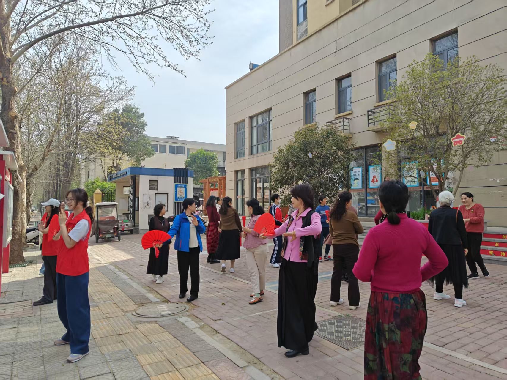 活动中,志愿者们早早来到社区,与相关负责人沟通后,便开始了准备工作,拿出了非遗木兰扇,并向大家讲解木兰扇与巾帼英雄花木兰的文化渊源。在互动环节中,领舞志愿者对动作要领、握扇角度和步伐节奏等方面进行了细致的讲解,使社区居民对非遗传统木兰扇有了进一步的理解。随后领舞志愿者站于前排领舞,有了基础的加持社区居民们个个精神抖擞,纷纷舞动着木兰扇,仿若只只蝴蝶在人群中飞舞。大家沉浸其中,笑容满面。活动接近尾声时,大家展示成果并合影留念。社区负责人表示希望青年志愿者能够多多来社区举办此类活动,社区将热烈欢迎。