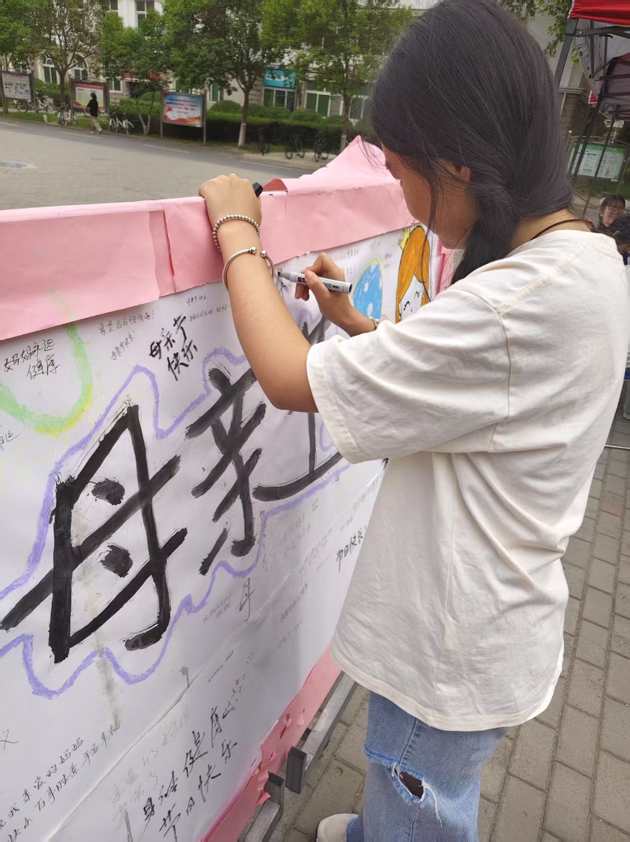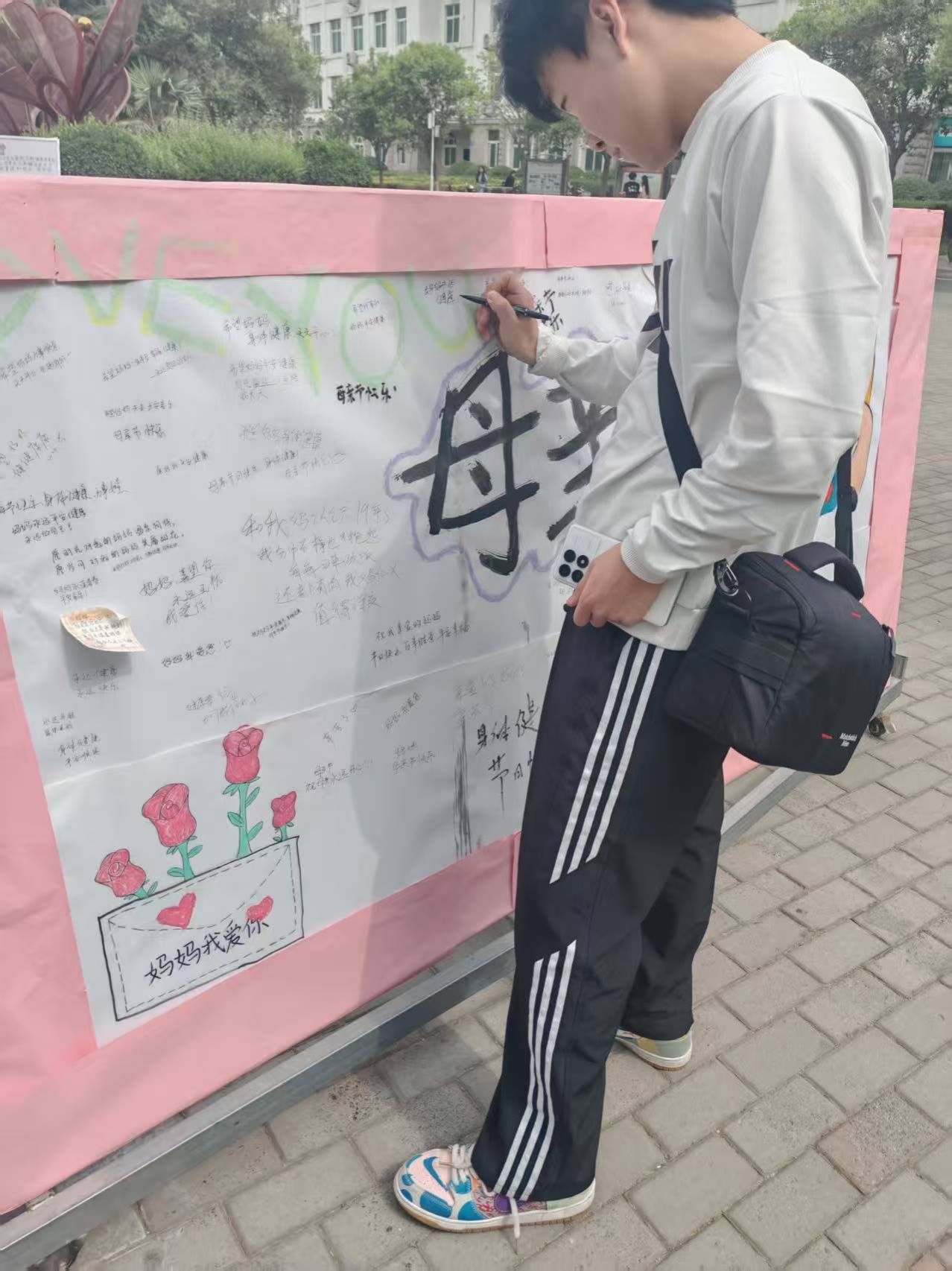 活动现场,同学们热情高涨,积极参与互动。在精心布置的展板与便利贴区域,同学们纷纷执笔,将内心对母亲的祝福与感恩化作文字,一笔一划间尽显真挚情感。不久,展板和便利贴便被温暖话语填满,每一句话都承载着对母亲的深情。与此同时,许多同学自备信纸,伏案书写感恩信。他们用质朴的文字,细腻地表达对母亲辛勤付出的感激,描绘成长过程中母爱的点滴温暖,更送上对母亲未来的美好祝愿。一封封饱含真情的家书,成为连接母子情感的桥梁,展现出学子们细腻的内心世界。通过书写祝福与家书,同学们的感恩回馈意识得以增强,奉献精神得到培养,充分彰显了当代青年心怀善意、懂得感恩的美好品质。