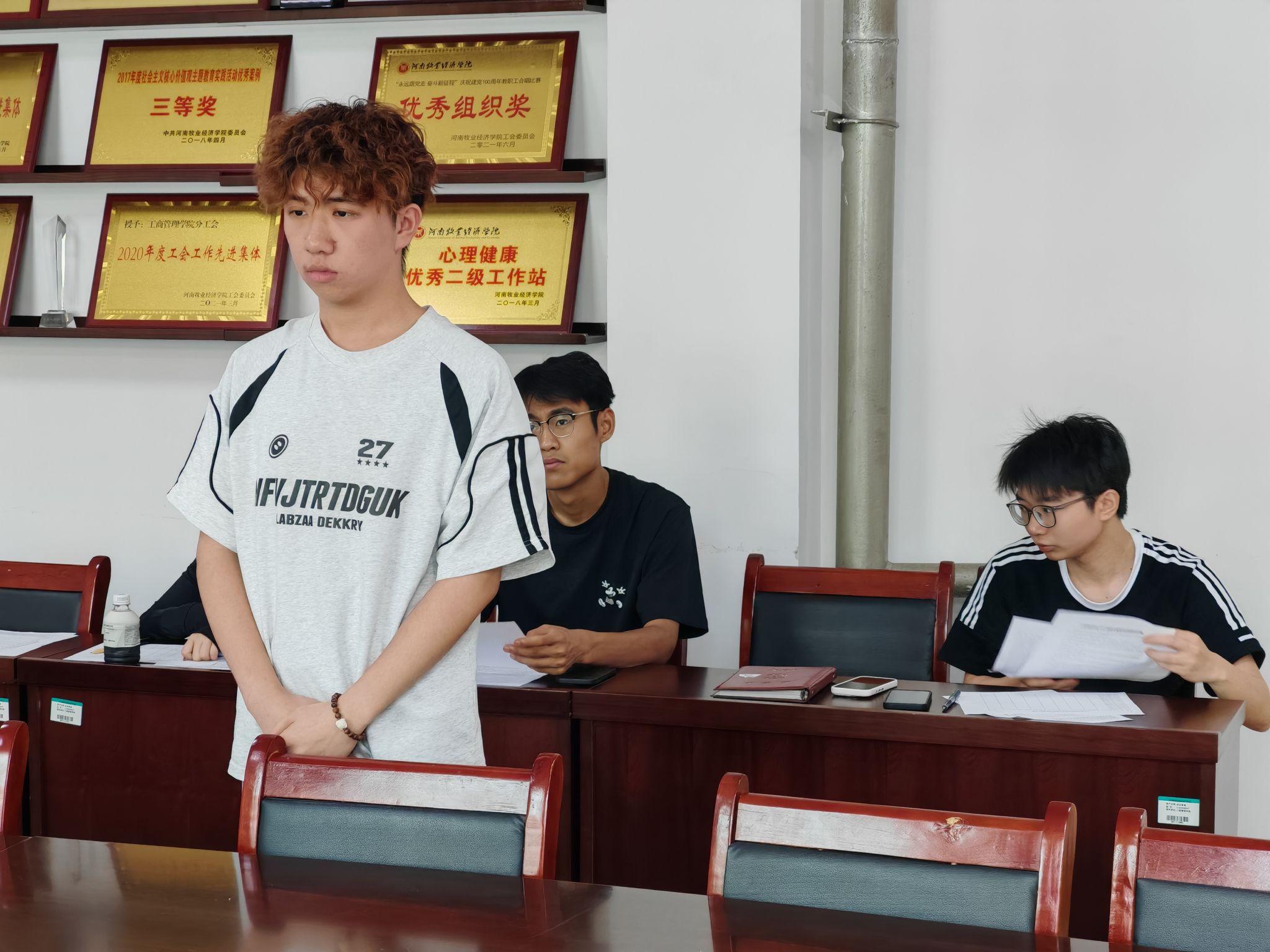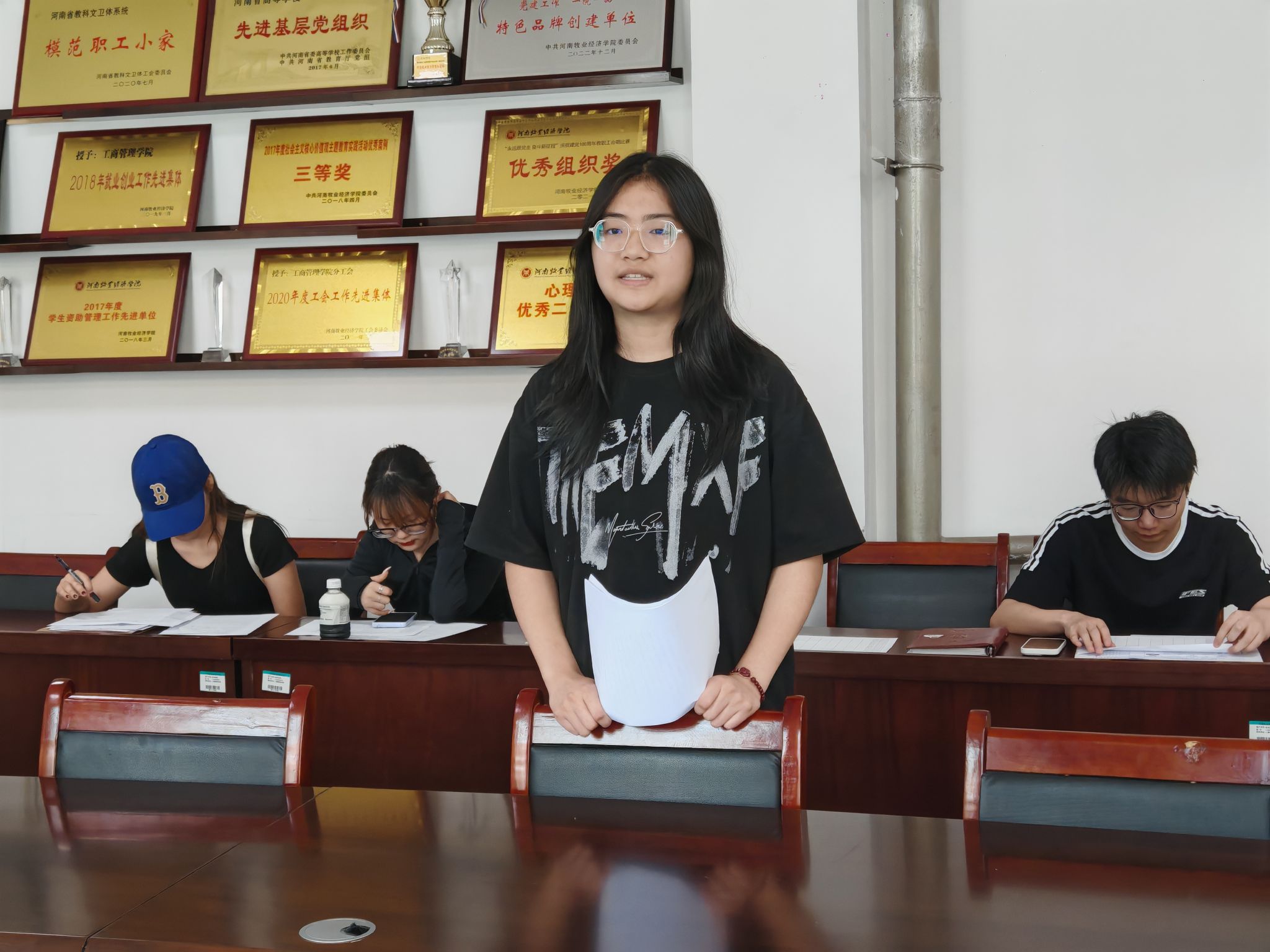 此次选拔经学生自主报名、严格审核材料、初步筛选后共有23 名学生进入面试环节。面试开始,贾雪结合往届工作案例,不仅清晰阐释了面试流程与评分标准,还着重强调了岗位所需的责任意识与沟通技巧,为同学们指明了方向。随后,在自我介绍阶段,同学们紧扣自身学习生活轨迹,通过分享在工作中统筹协调的经验或志愿服务的暖心故事,阐明了竞聘初衷与优势,条理清晰地勾勒出对工作的认知与执行思路,展现了服务新生、担当责任的热忱。最后,进入提问考察环节,评委们结合新生辅导员助理实际工作场景,围绕对岗位的理解、政策解读、集体活动策划、新生入学适应期心理疏导、突发情况应对、协助开展新生思政教育与日常管理等内容,抛出针对性问题。同学们冷静思考、真诚作答,充分展现出积极向上的精神风貌与解决问题的潜力,全方位接受评委对其综合素养与岗位适配度的深度考察。
