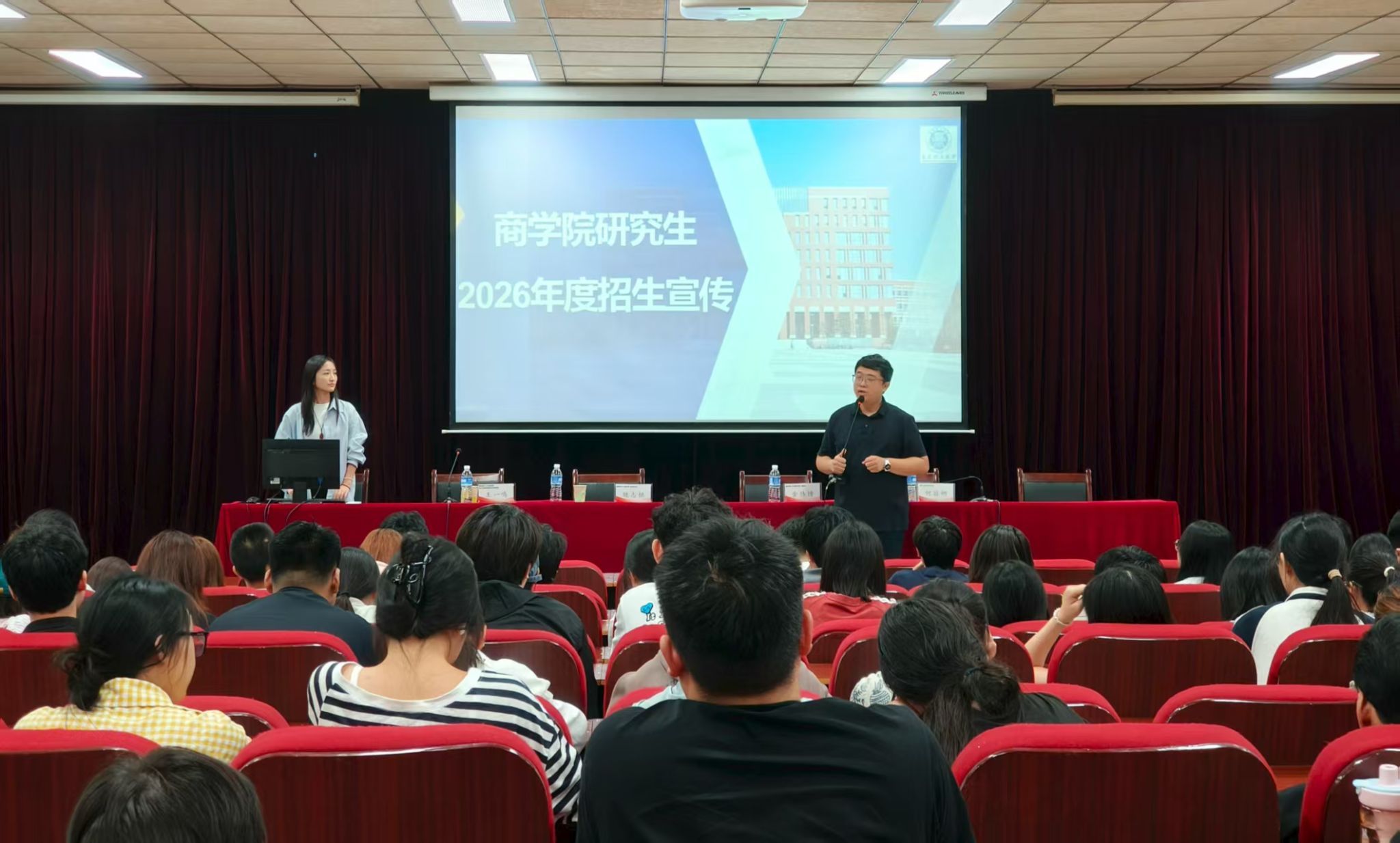 为深化院际交流、推动研究生教育资源共享与优势互补,2025年9月11日,青岛理工大学商学院副院长金炜博率团队赴ok138cn太阳集团古天乐,开展研究生招生政策宣讲及学科建设交流活动。ok138cn太阳集团古天乐副院长何丽娜(主持行政工作)、党委副书记詹珅、教师代表及百余名本科生参与本次活动。
