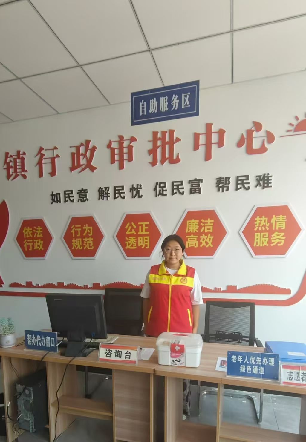 24大数据管理01班的晁紫玮同学响应基层服务号召,前往漯河市临颍县瓦店镇政府行政服务大厅开展志愿服务。随着政务服务事项日益增多,群众对办事流程的熟悉程度参差不齐,行政服务大厅时常面临咨询集中、效率待提升的情况。自7月10日起,她每天早上8点半准时到岗,整理好着装、熟悉当日业务后,便以饱满的热情迎接每一位群众。遇到咨询社保业务的老人,她不仅耐心倾听需求、清晰告知窗口位置,还细心搀扶着老人送到办事窗口,全程贴心陪伴;面对办理营业执照的商户,她详细拆解所需材料清单和办理步骤,帮助商户快速定位业务区域,用专业引导减少等待时间。整个志愿服务过程中,她始终带着微笑,用热情化解群众的焦虑,用细致让服务更有温度。晁紫玮同学表示,此次实践让她深刻体会到基层工作的重要性与不易,每一件看似简单的小事,都关系着群众的切身利益。在与不同群体的沟通中,她的沟通能力和应变能力得到了显著提升,更在帮助他人的过程中收获了满满的成就感与幸福感。她认为,新时代大学生就应该主动走出校园,用所学所能为社会添力,也呼吁更多同学加入志愿服务队伍,让爱心与正能量在基层传递,共同为和谐社会建设添砖加瓦。