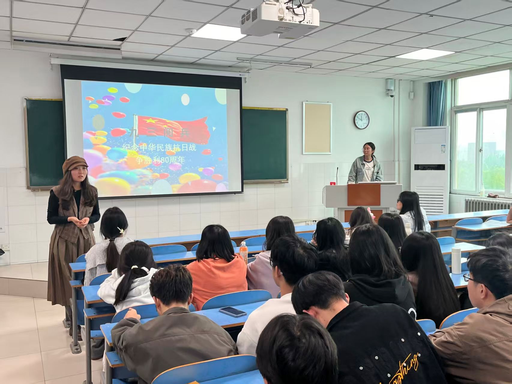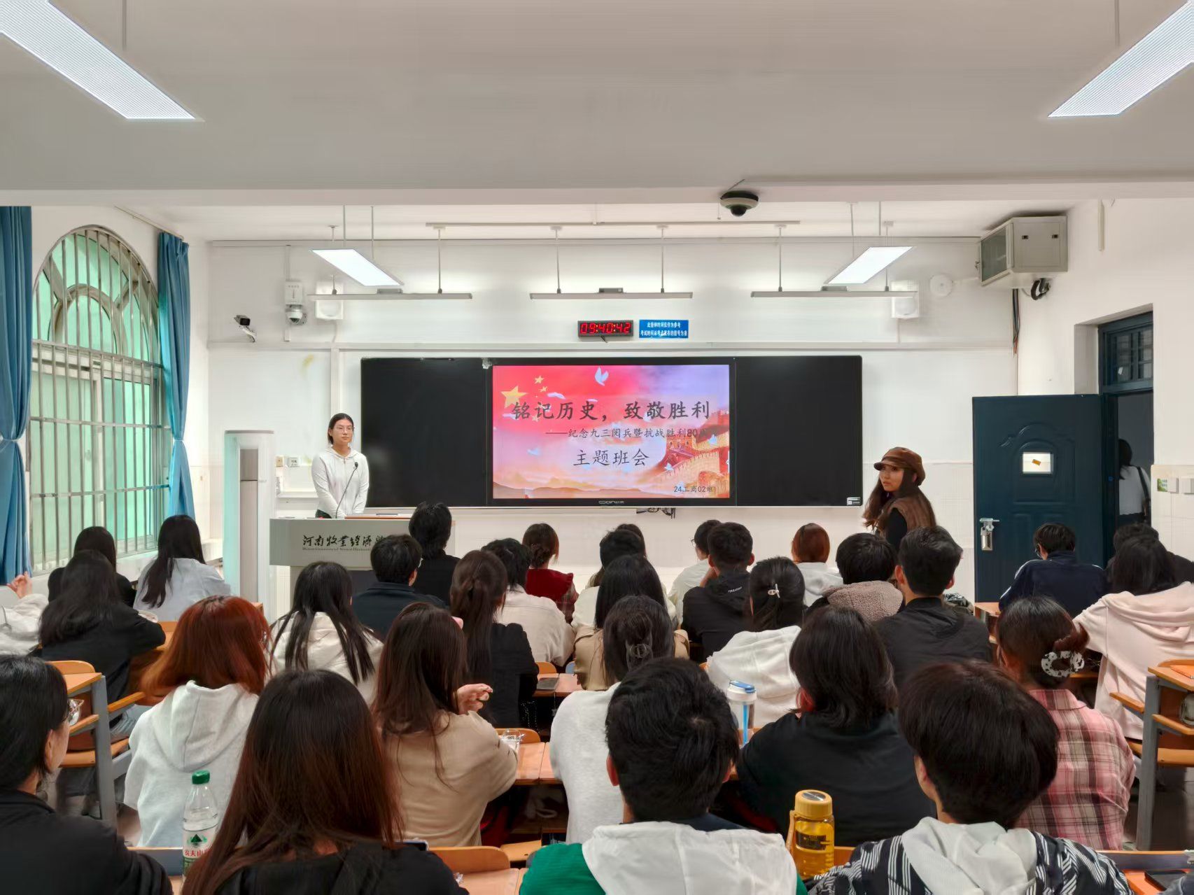 为深入贯彻落实全民国防教育要求,深情回顾中国人民抗日战争伟大历程,切实增强学生的国防观念与爱国情怀,ok138cn太阳集团古天乐于2025年9月23日成功举办了以“铭记历史,致敬胜利——纪念九三阅兵暨抗战胜利80周年”为主题的班会活动。