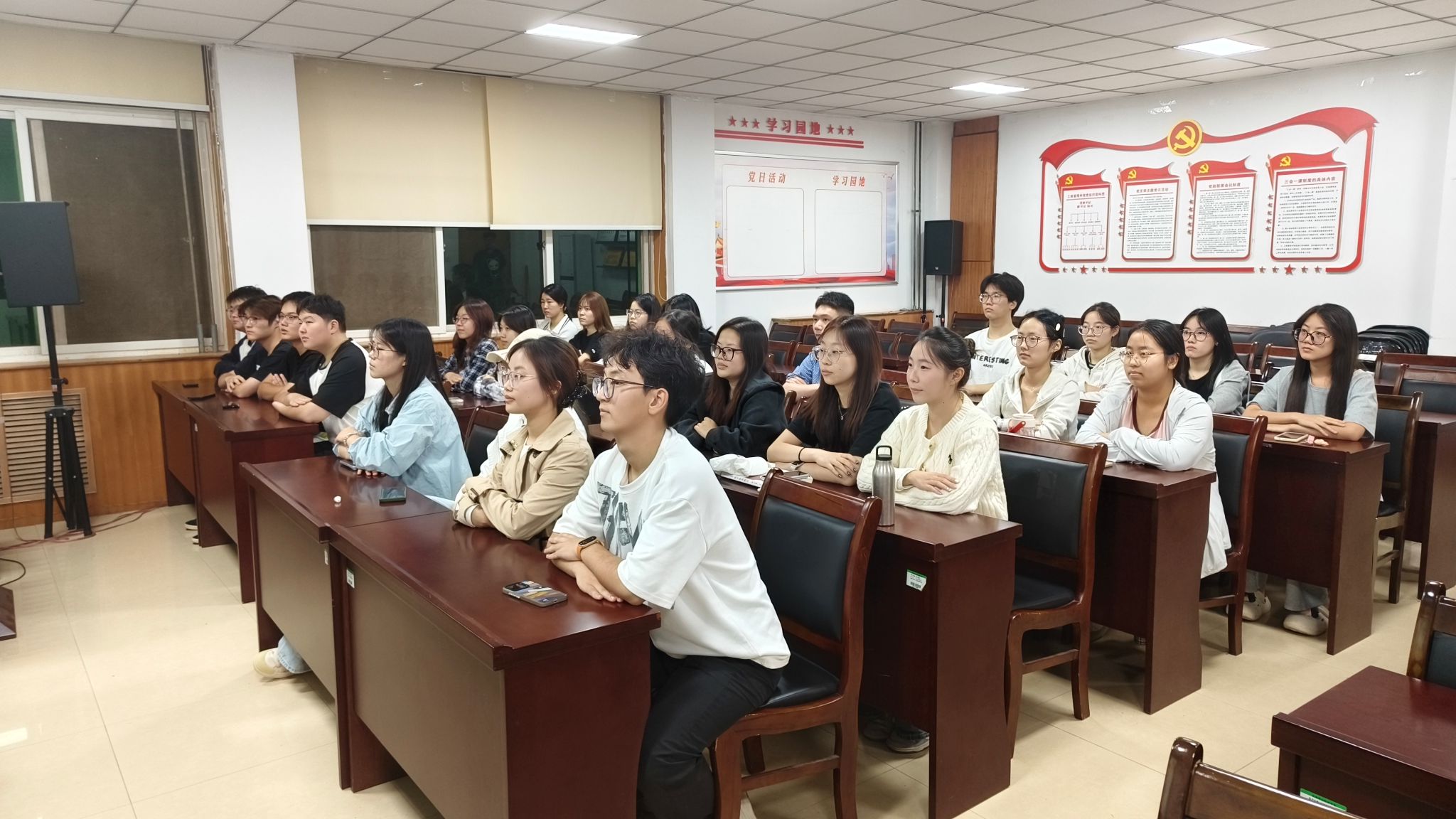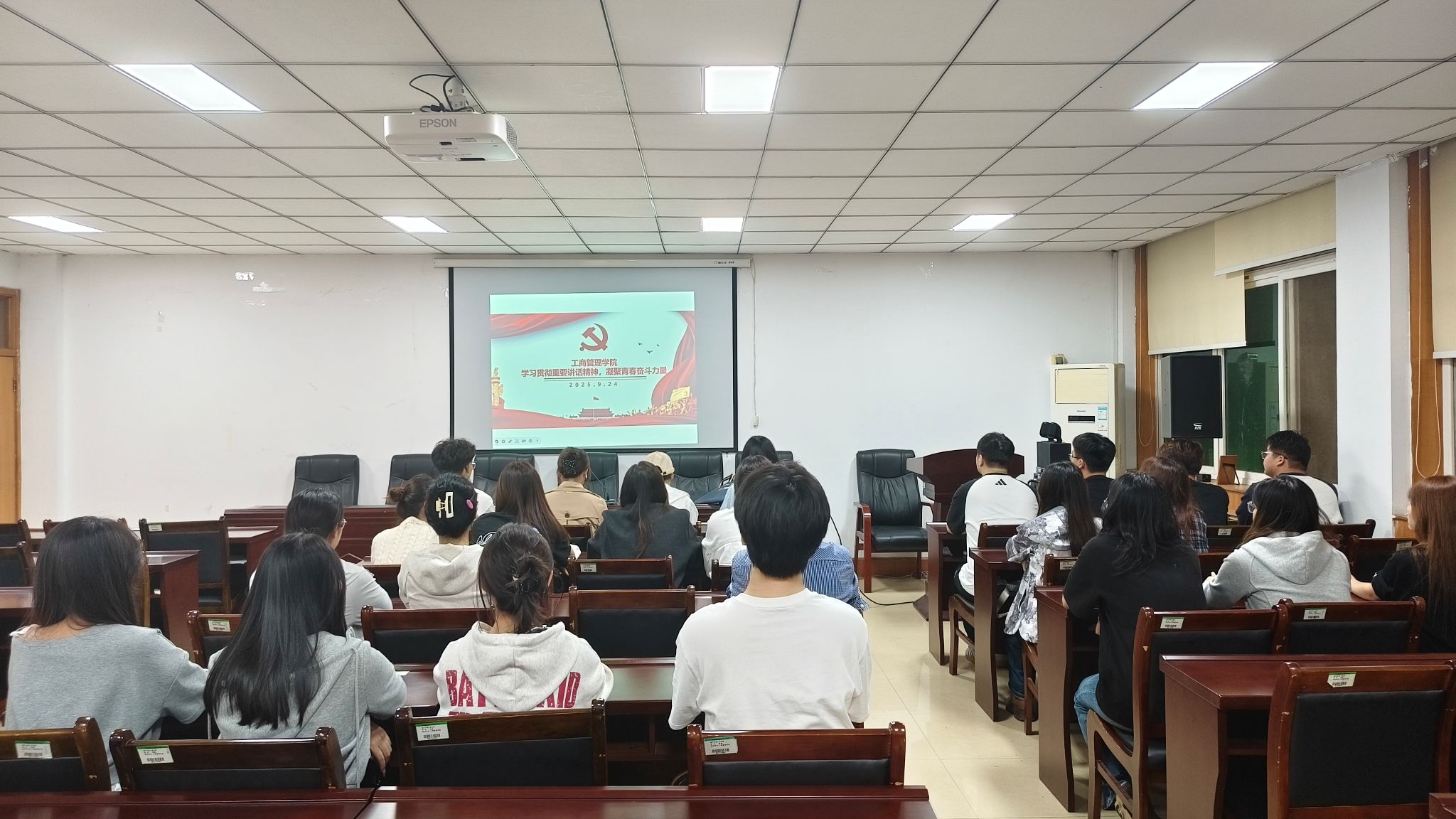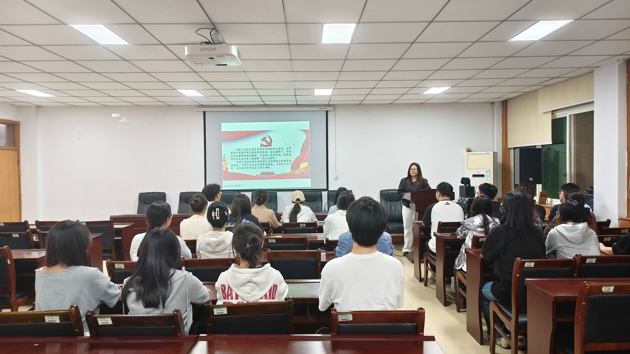 活动伊始,工作人员带领参会人员集体学习讲话核心内容,通过梳理抗战历史脉络、解读精神内涵,帮助大家深刻把握讲话的核心要义与时代价值。随后进入代表发言环节,常艺馨、武聪妹、张翼等学生党员及入党积极分子结合自身学习生活、志愿服务或专业实践经历,分享对讲话精神的理解,展现青年党员传承抗战精神、勇担时代使命的坚定态度。发言结束后,活动增设“红色影像片段观看”环节,通过播放抗战主题纪录片精选片段,让参会人员直观感受抗战先辈的英勇事迹与民族气节,进一步强化历史记忆与精神共鸣。