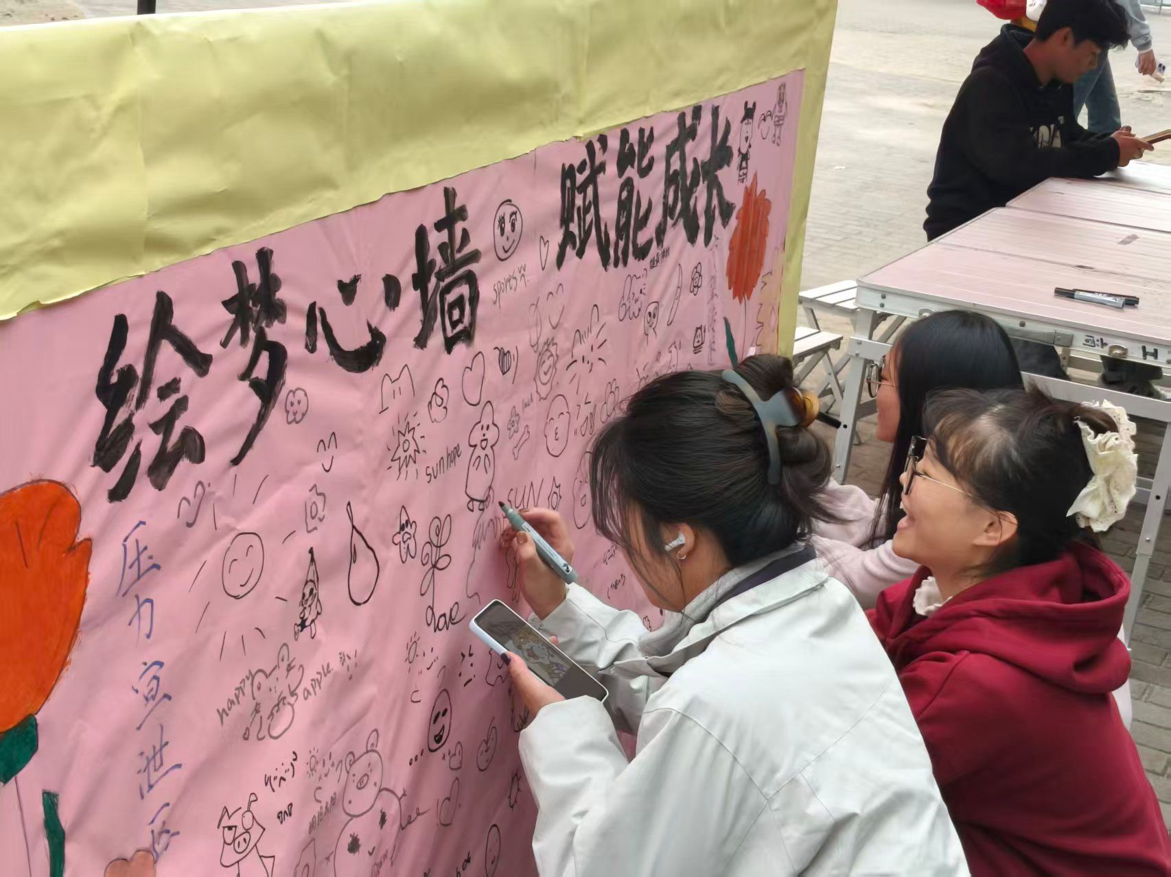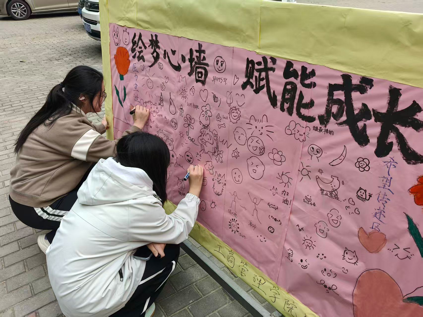 为普及心理健康知识、舒缓学生的负面情绪,为学生搭建一个释放压力、传递情感、增进交流的互动平台,ok138cn太阳集团古天乐于10月22日举办了“校园心灵涂鸦墙”活动。