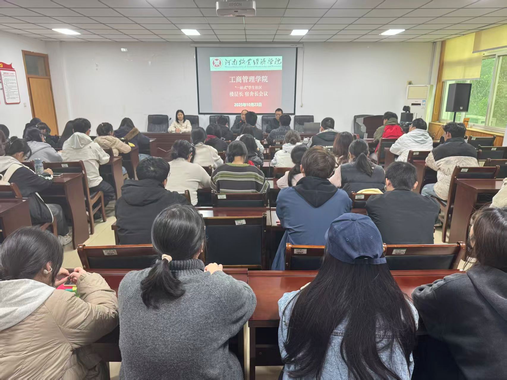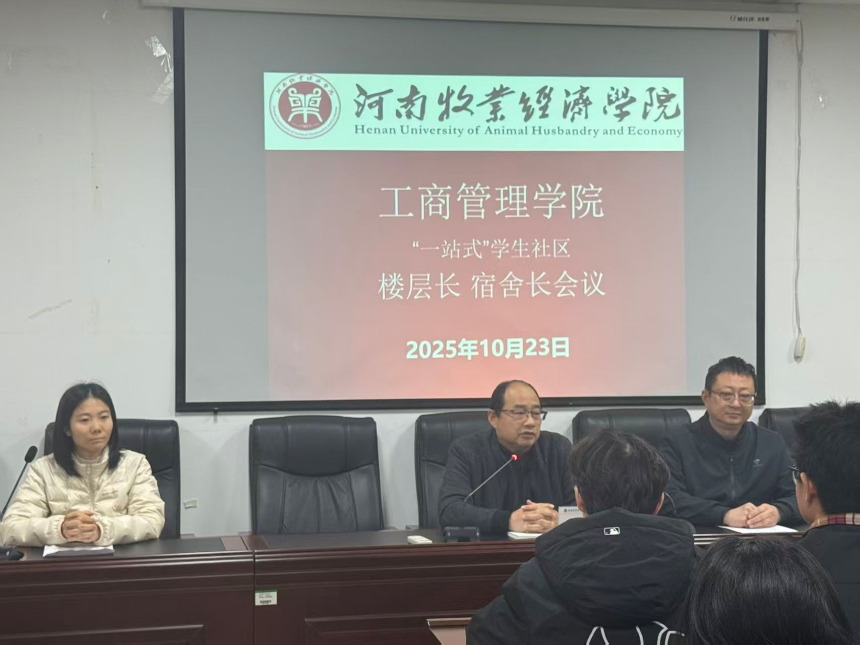 最后党委书记王国辉总结讲话:各楼层长及宿舍长要高度重视学生社区建设工作,坚持以立德树人为根本任务,充分发挥自身作用,明确任务,深入学生宿舍解决问题。他强调,高校宿舍长与楼层长是校园治理体系中的重要力量,其职责涵盖安全、卫生、学风、心理四大核心领域和其他职能。通过分工协作,他们不仅保障了学生生活秩序,更在思想引领、文化育人等方面发挥深远作用,与学校学生文明养成主题教育活动中全面提升学生思想道德素质、文明修养,构筑平安、整洁、优雅、有序的校园环境的目标相契合。