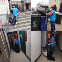 国家抗“疫”工作正在紧锣密鼓地开展,19级人资01班袁宇慧同学深受触动,她于2020年02月10日至今,在北京市朝阳区北苑家园莲葩园社区参与小区站岗、登记并检测来往人员相关情况的工作,同时张贴有关疫情的通知与文件、帮助隔离在家人员清理生活垃圾并对楼内公共用品进行消菌杀毒。她深知作为一线防疫人员的子女,应当向父母学习,帮助群众,为国奉献。