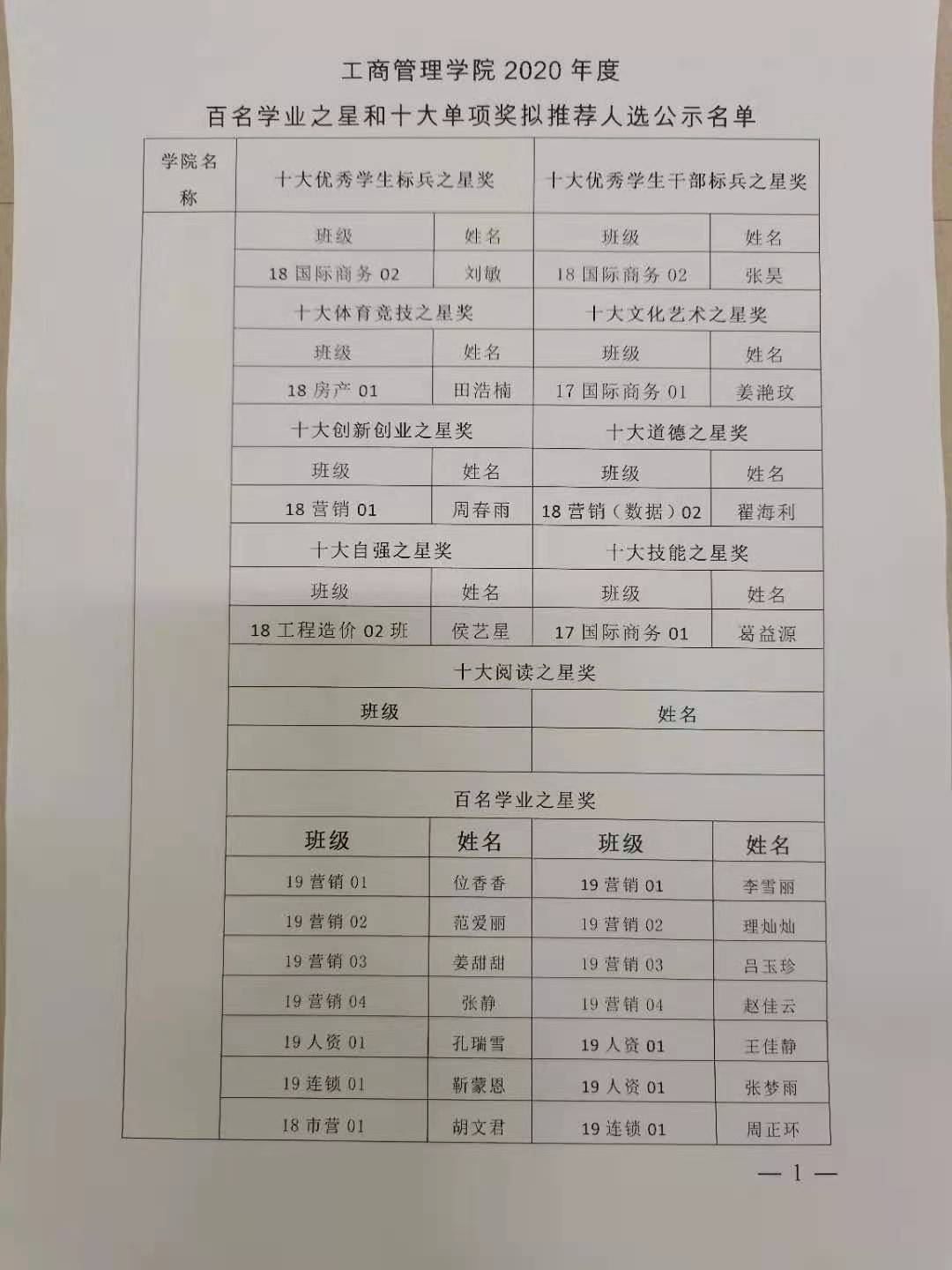 根据《ok138cn太阳集团学生表彰奖励实施办法(试行)》有关规定和学生处《校学工[2020]32号-关于开展第四届校级学生专项奖和“百名学业之星”评选活动的通知》文件精神,ok138cn太阳集团古天乐严格按照评选要求,通过个人申请、班级推荐、民主评议及学院学生工作领导小组研究决定,拟推荐2020年度第四届校级学生专项奖和“百名学业之星”名单,现进行公示:
