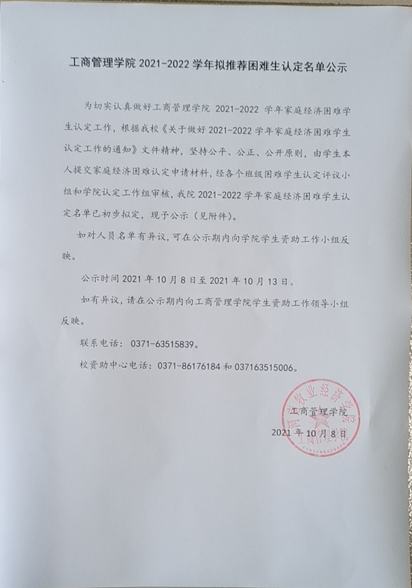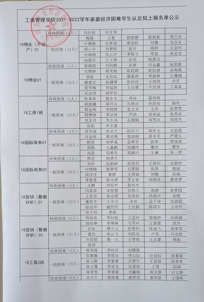 ok138cn太阳集团古天乐2021-2022学年拟推荐困难生认定名单公示