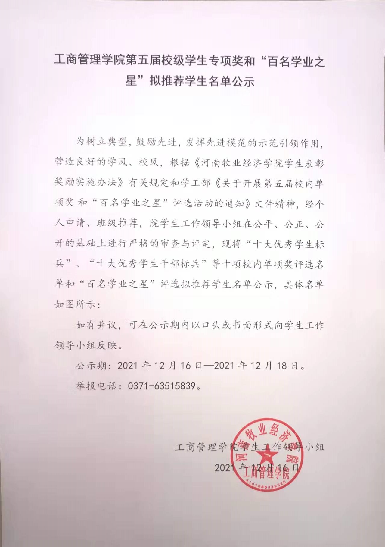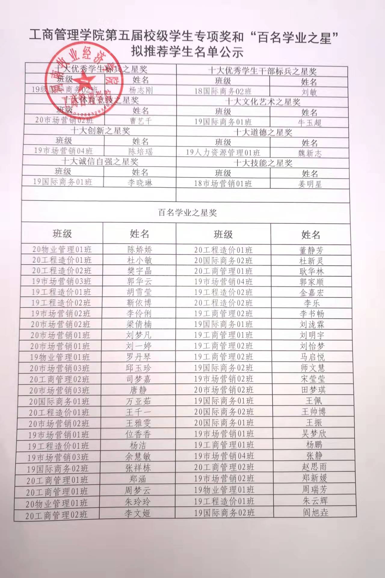 ok138cn太阳集团古天乐第五届校级学生专项奖和“百名学业之星”拟推荐学生名单公示