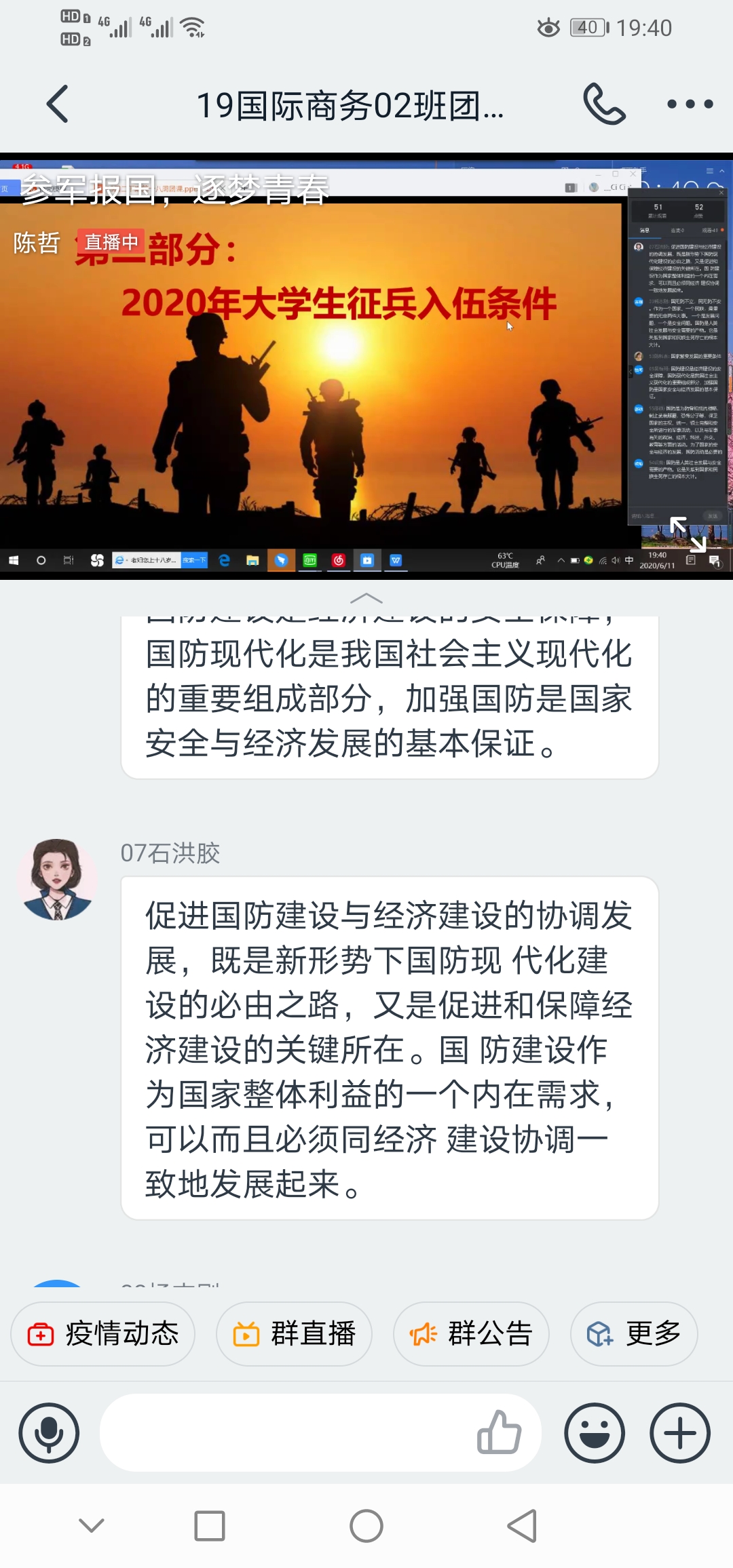 为贯彻落实国家征兵工作,鼓励学生积极参与应征入伍,提高兵员征集质量,推进国防和军队现代化建设。6月11日晚7点30分ok138cn太阳集团古天乐开展“参军报国,逐梦青春”线上主题团课。参加此次团课的有19级400余名学生。