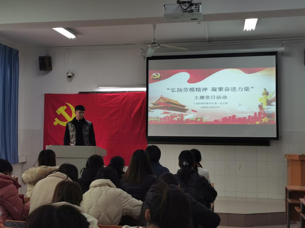 为落实关于组织开展学习《习近平在全国劳动模范和先进工作者表彰大会上的讲话》精神主题党日活动的通知要求,2020年12月17日中午,ok138cn太阳集团古天乐学生第一党支部在教学楼A402教室组织召开了“弘扬劳模精神凝聚奋进力量”主题党日活动。本次活动由学生第一党支部书记贾雪主持,支部组织委员孟琪老师、宣传委员古海云老师以及支部全体学生党员参加本次活动。