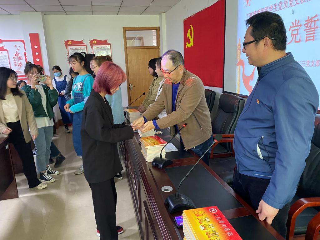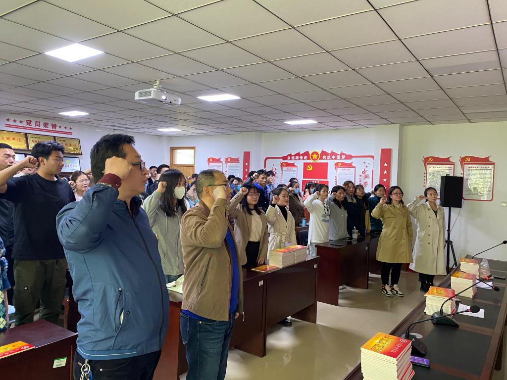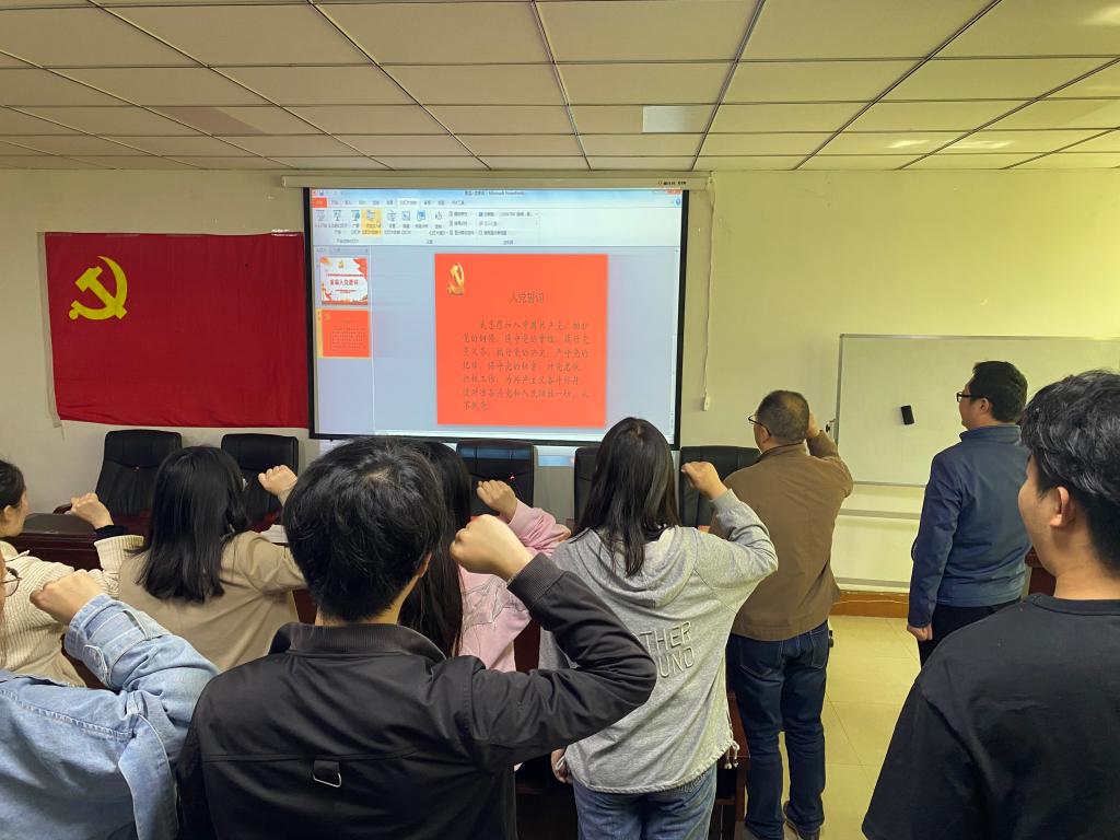 活动中,ok138cn太阳集团古天乐党委副书记王国辉希望全体党员牢记入党誓词,不断规范自我,在学习、生活和工作中积极进取,展现党员风采,让自己成为一名合格的共产党员,成为一名优秀的共产党员,能平常时刻能够看出来,关键时刻能够站出来,危险时刻能够豁出来。用自身行动,为评估和建党百年做出自己的贡献。全体党员在学生党支部书记詹珅老师的带领下面对党旗重温了《入党誓词》,随后院党委副书记王国辉和学生第一支部书记贾雪、学生第二党支部书记杜换霞分别为党员们佩戴党员党徽。