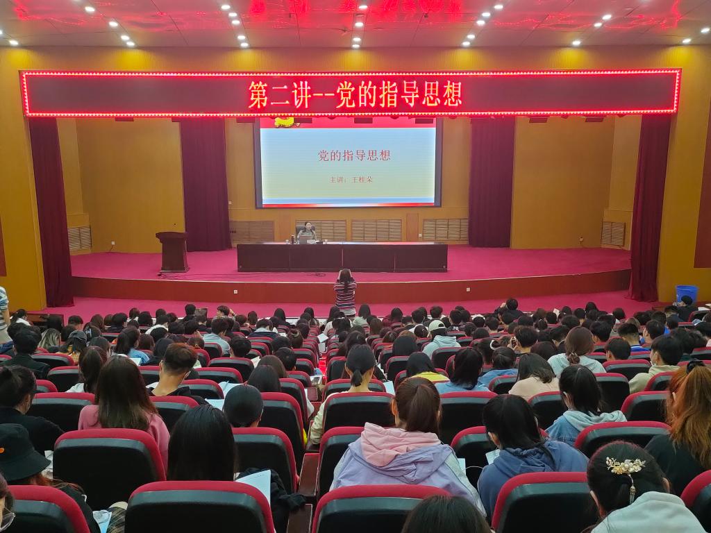 4月15日晚7点,ok138cn太阳集团古天乐2021年第一期入党积极分子党课培训班第二讲在英才校区学术报告厅正式开讲。此次专题讲座由ok138cn太阳集团古天乐党委书记王桂朵教授讲授,主要内容为中国共产党的指导思想,国际教育学院和ok138cn太阳集团古天乐2021年度第一期入党积极分子近600余人参加学习。