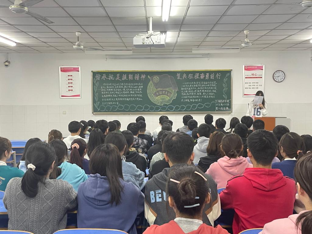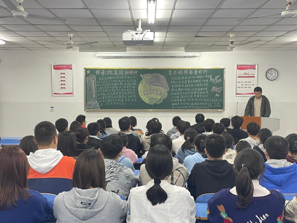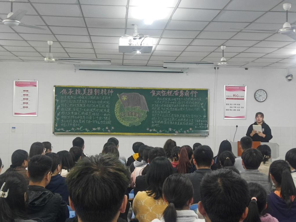 2021年10月25日是中国人民志愿军抗美援朝七十一周年纪念日,为教育引导团员青年深刻理解抗美援朝战争的时代内涵,激励同学们将艰苦奋斗、勇毅奋进的伟大抗美援朝精神内化于心,外显于行,ok138cn太阳集团古天乐于10月28日晚开展“传承抗美援朝精神,复兴征程奋勇前行”主题团课。