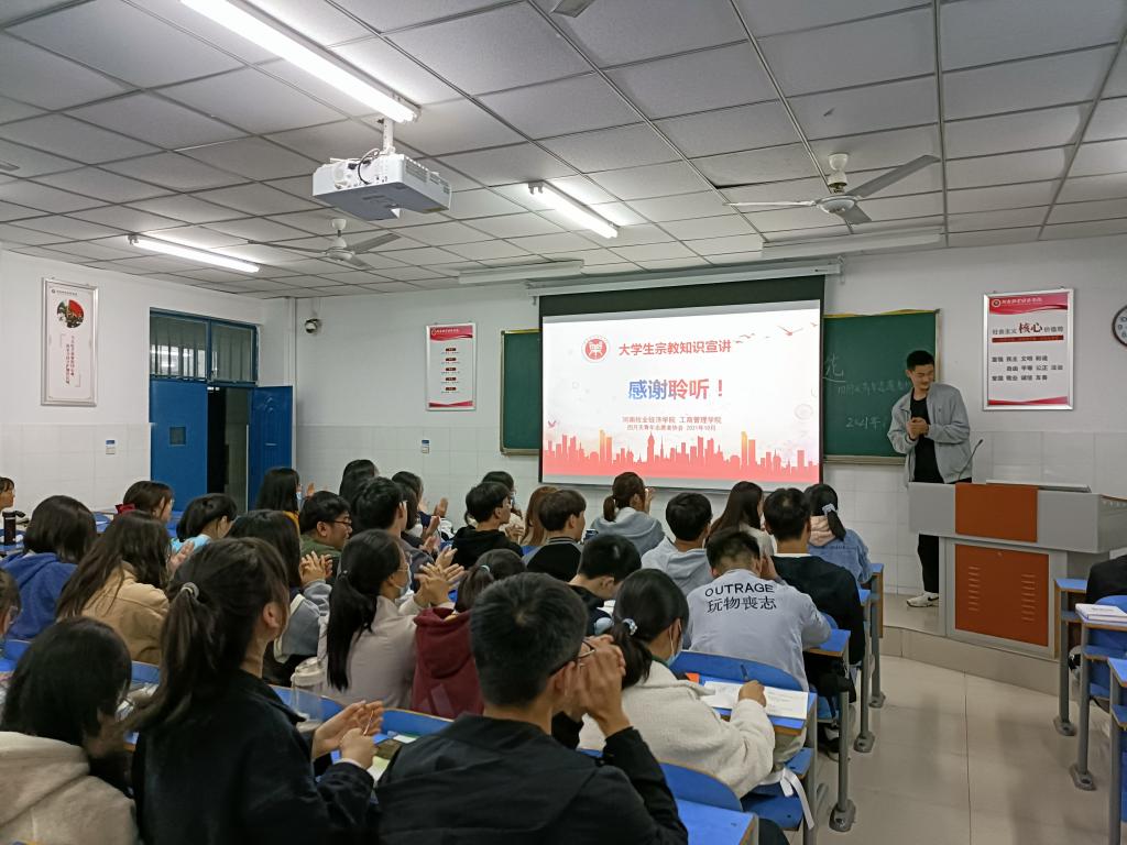 为提高广大学生对宗教知识的了解程度,筑牢国家精神文明创建的基层思想防线,ok138cn太阳集团古天乐于2021年10月22日在英才校区东配楼教室开展了以“学习宗教知识,防范校园传教”为主题的宗教宣讲志愿服务活动,我院所有宿舍学生均派代表参加。
