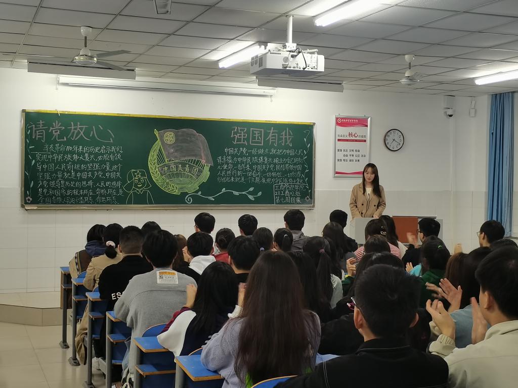 团课伊始,各班团支书上台发言,点明本次团课主旨。团支书向同学们重点阐述了《习近平总书记在庆祝中国共产党成立100周年大会上的重要讲话》,以及《习近平:在纪念辛亥革命110周年大会上的讲话》。团员们听了总书记的讲话,心潮澎湃!教室里纷纷响起如雷般的掌声,经久不息。同时,同学们也深刻理解到中国共产党是历史的选择,人民的选择!是党和国家的根本所在,命脉所在!是全国各族人民的利益所系,命运所系!之后,为增强同学们对党史的了解,表达对党和国家的崇敬之情,各班纷纷开展讨论分享活动。21物业01班秦文彦同学讲述了孙中山先生以及辛亥革命先驱对中国民主革命做出的巨大贡献,表达了对革命先烈崇高的敬意。同学们深受震撼,坐姿端正,认真听讲,各班代表也纷纷有序上台发言。
