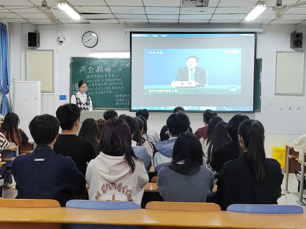 团课伊始,各班团支书通过视频、PPT等形式向大家介绍了“两会”提出的一系列重要论述,让同学们了解到在过去的一年里,以习近平同志为核心的党中央团结带领全国各族人民迎难而上、齐心协力,让同学们感受到中国共产党的坚强领导力。接着,各班团支书就“应该怎样学习两会精神”这一问题组织同学们交流讨论,同学们积极发表意见,纷纷表示会认真学习“两会”精神,不断加强对党的路线、方针政策的认识和理解,作为新时代的青年,要立德修身笃行,将“两会”精神和青春的热情、昂扬的斗志与学习、生活结合起来,将自身的发展和国家的发展联系起来,肩负起国家建设的重任。最后,各班团支书督促同学们及时做好“青年大学习”的网上团课学习,重视团课学习工作,并鼓励同学们利用课余时间进行线上学习,关注时政热点,扎实专业理论知识,增强自身责任感,肩负起新时代青年学生的使命。