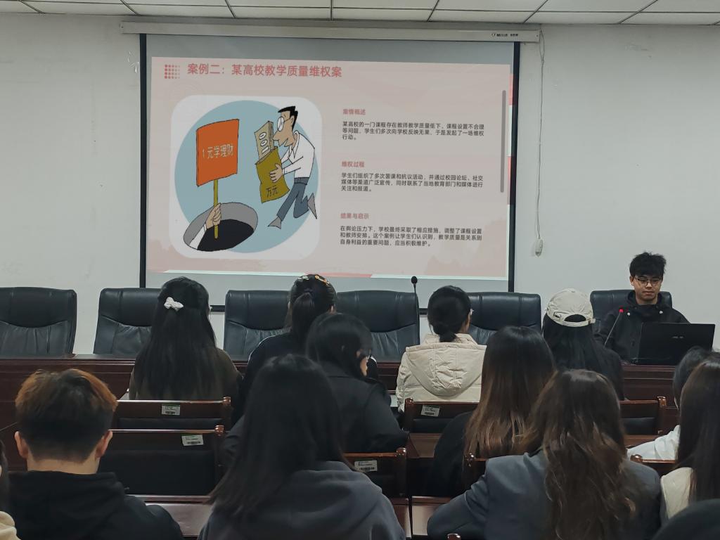 本次培训由团学会主席王海涛主讲,旨在帮助学我院团学会更好地了解大学生的权益保障相关知识,提高他们的法律意识和维权能力,使他们能够更好地代表和服务广大学生群体。本次培训设置了意见反馈平台的使用教学、案例分析等多种形式,通过理论学习和实践操作相结合的方式,使我院团学会成员能够更加深入地了解大学生权益维护工作的重要性和复杂性,提高他们的维权能力和应对突发事件的能力。王海涛强调希望通过此次培训,能够激发团学会成员的责任感和使命感,提升他们的综合素质和服务意识,为更好地维护广大学生的合法权益提供有力的保障和支持。