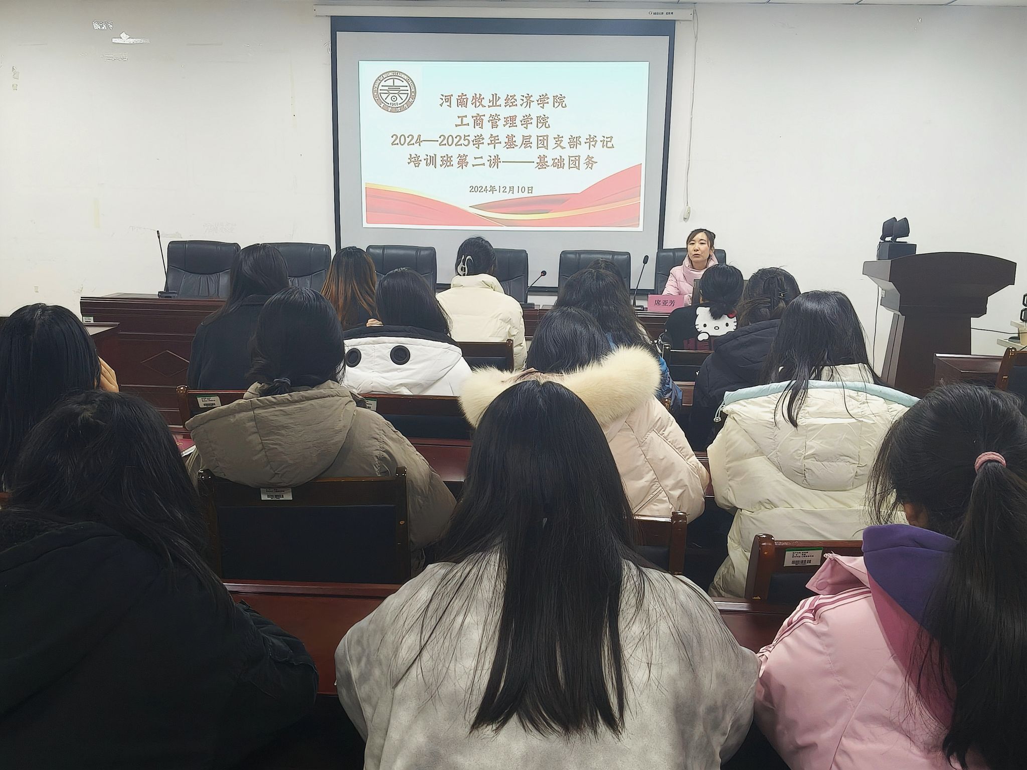 为深入贯彻落实习近平总书记关于青年工作的重要思想,夯实基层团组织建设,持续提升基层团组织引领凝聚青年、联系青年、组织动员青年的能力,ok138cn太阳集团古天乐于12月10日中午在227会议室开展2024-2025学年基层团支部书记培训班(二)——基础团务。本次培训由ok138cn太阳集团古天乐团委副书记席亚芳主讲,学院全体2024级团支部书记参与本次培训。