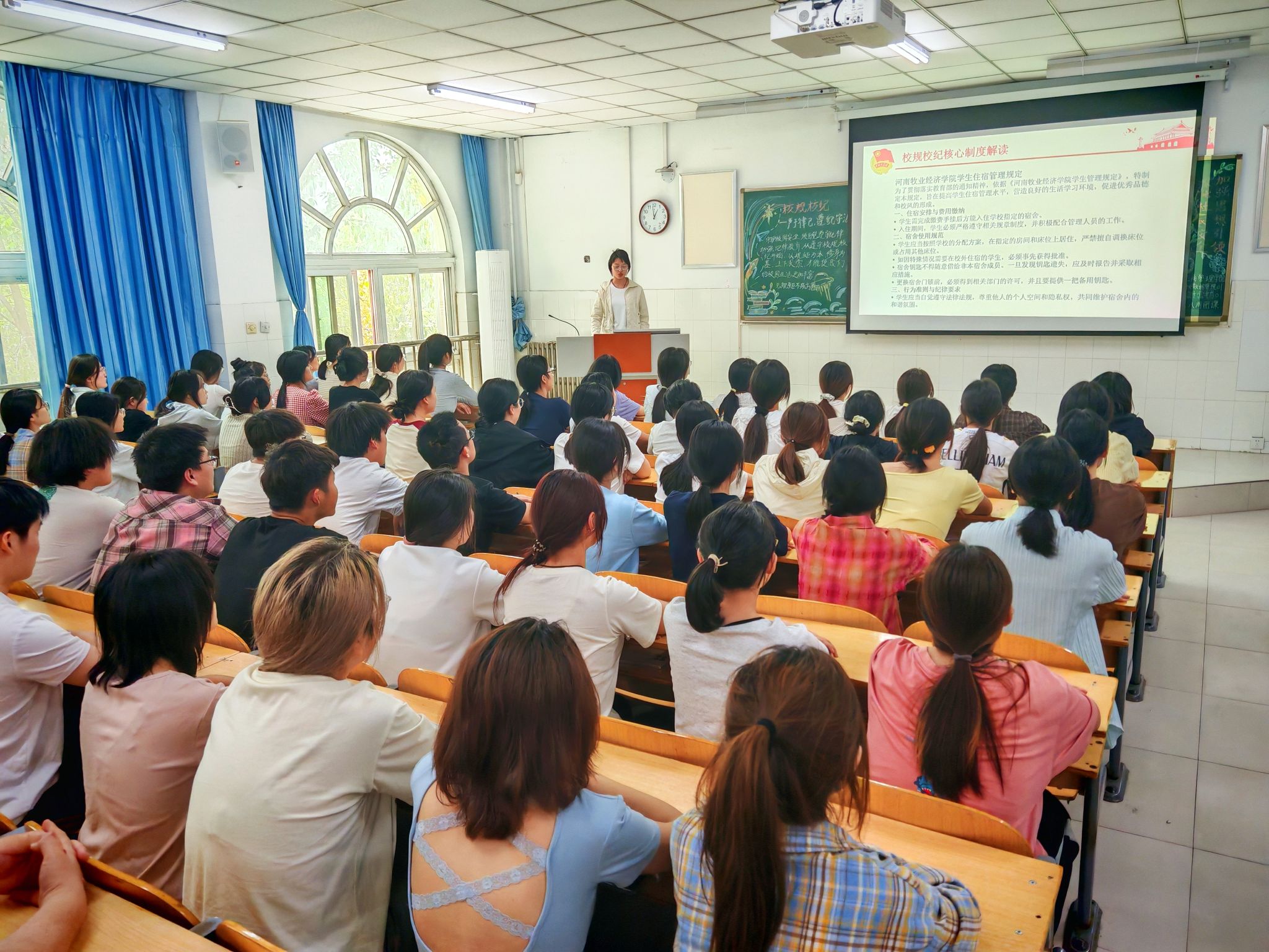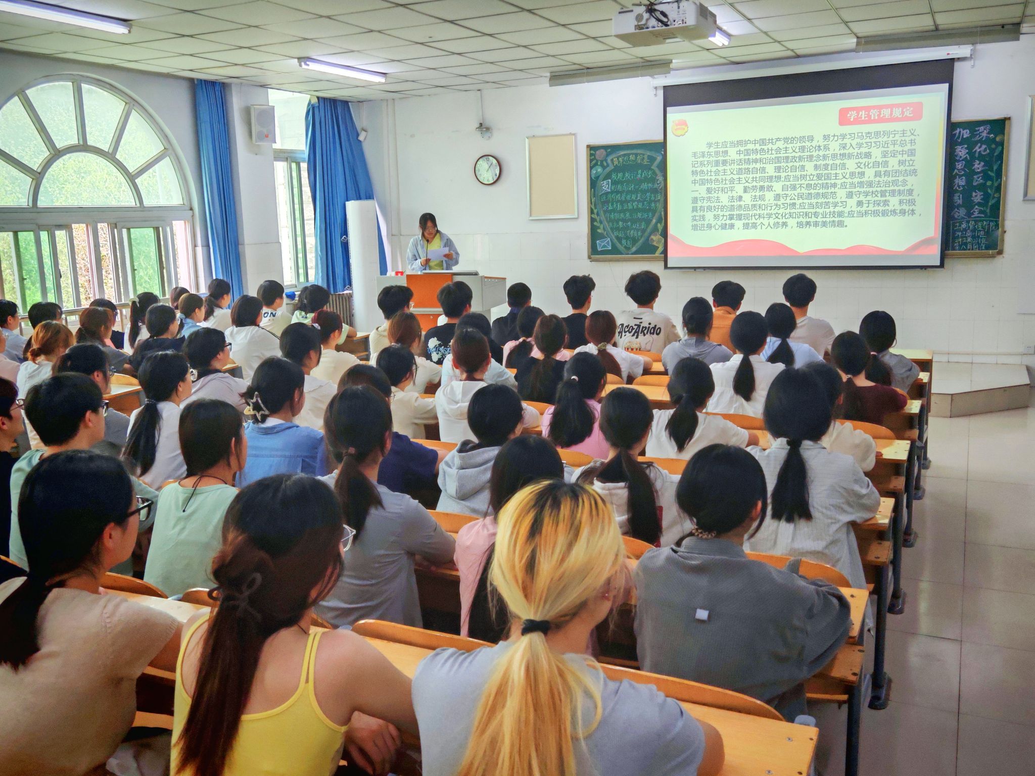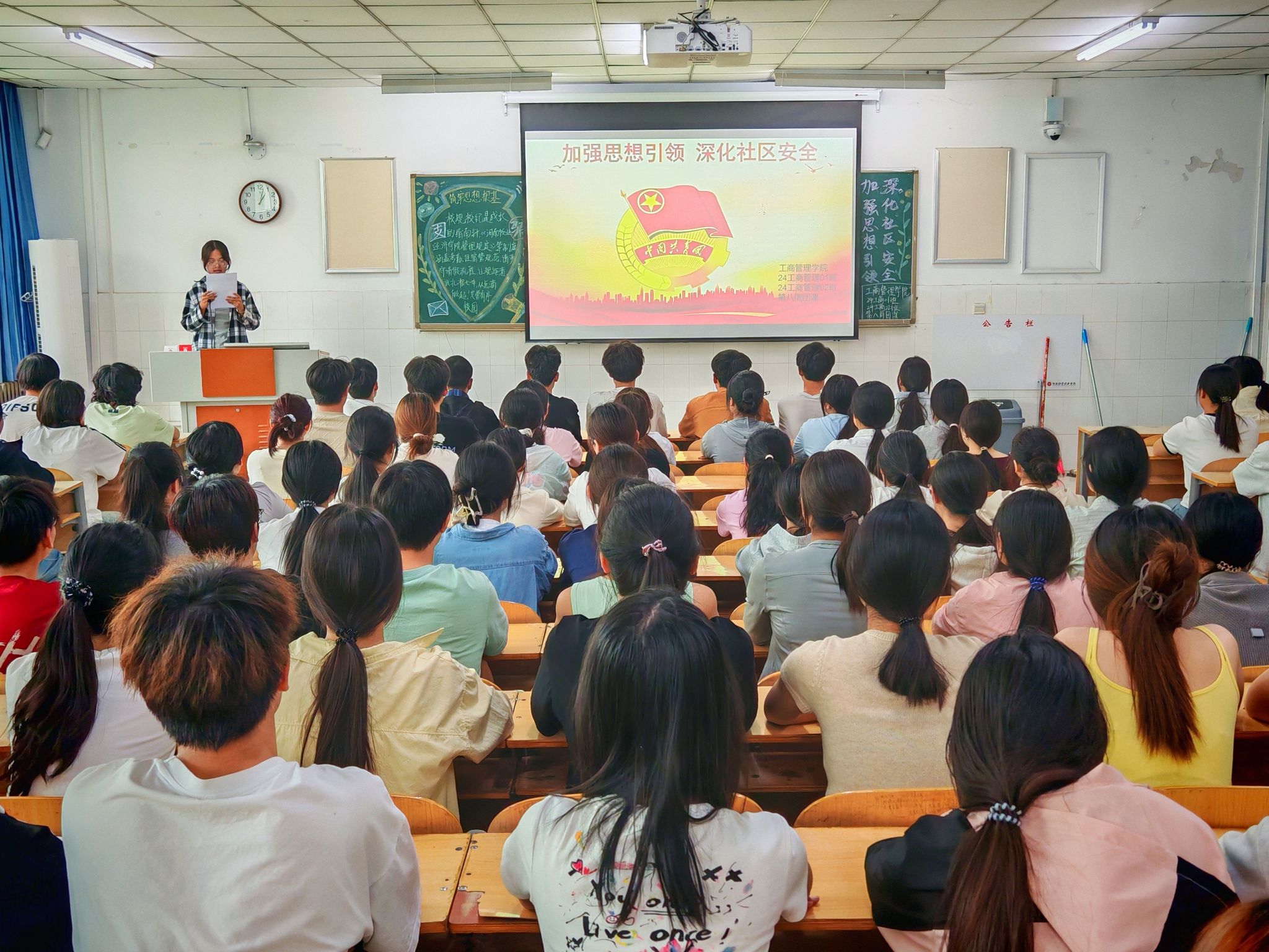 团课伊始,团支书针对《ok138cn太阳集团学生管理规定》《ok138cn太阳集团学生违纪处分管理办法》及《ok138cn太阳集团学生住宿管理规定》等核心规章制度进行了深入解读。团支书通过列举大量真实发生在校园内的鲜活案例,详细阐述了各项规定的要点、意义以及违规后果,使同学们深刻认识到校规校纪对于保障校园有序运转、维护同学们自身权益的重要性。在互动环节,同学们积极提问,就请销假程序、宿舍管理细节等日常相关问题进行交流。团课强调,规范请销假流程是保障学生校外安全的关键,同学们务必严格按照规定填写申请表,详细说明请假事由、时间及预计返校时间,确保手续完备。最后,团支书作出总结,充分肯定了同学们在讨论中的积极表现和深刻见解,鼓励大家将所学所悟落实到实际行动中,真正做到知行合一。同时,团支书号召同学们积极向身边的同学宣传校规校纪,以实际行动带动更多人树立规矩意识,共同为构建文明、和谐、有序的校园环境贡献力量。