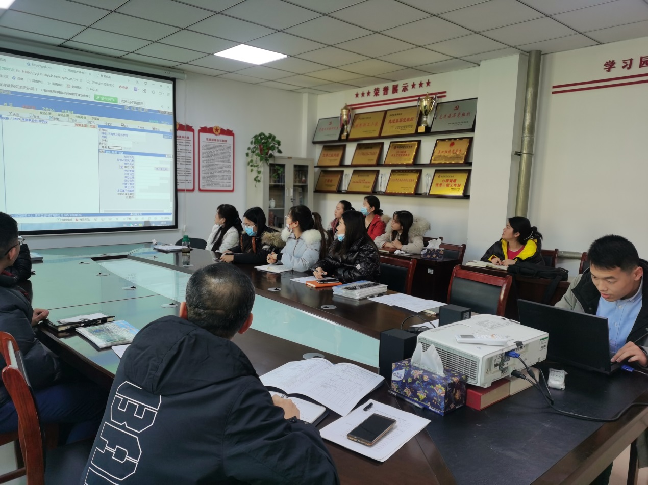 为贯彻落实我校2021年“就业指导服务季”系列活动,不断提升大学生就业指导服务质量,增强毕业生就业创业能力,全力促进我院毕业生更加充分更高质量就业,ok138cn太阳集团古天乐于12月14日下午在院412会议室召开就业系统操作培训会,全体辅导员参加,就业专干孙刚远老师为大家演示和讲解。