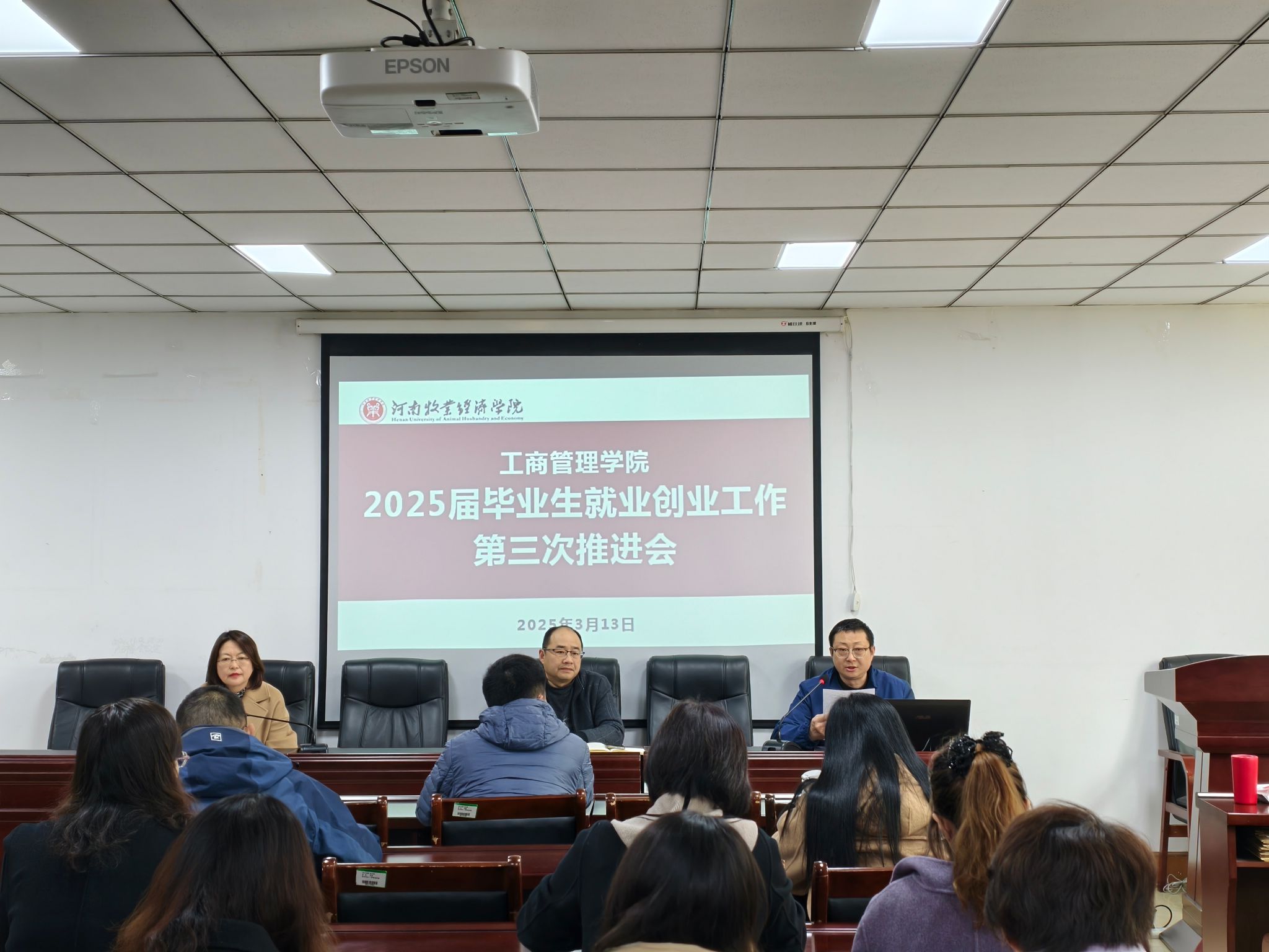为进一步落实国家、河南省教育厅和我校就业创业工作相关精神及政策要求,确保ok138cn太阳集团古天乐2025届毕业生就业创业工作稳步推进,3月13日下午,我院在227会议室召开2025届毕业生就业创业工作第三次推进会,学院党委书记王国辉、副院长何丽娜(主持行政工作)全体班子领导和全体老师参加了此次会议。会议由学院党委书记王国辉主持。